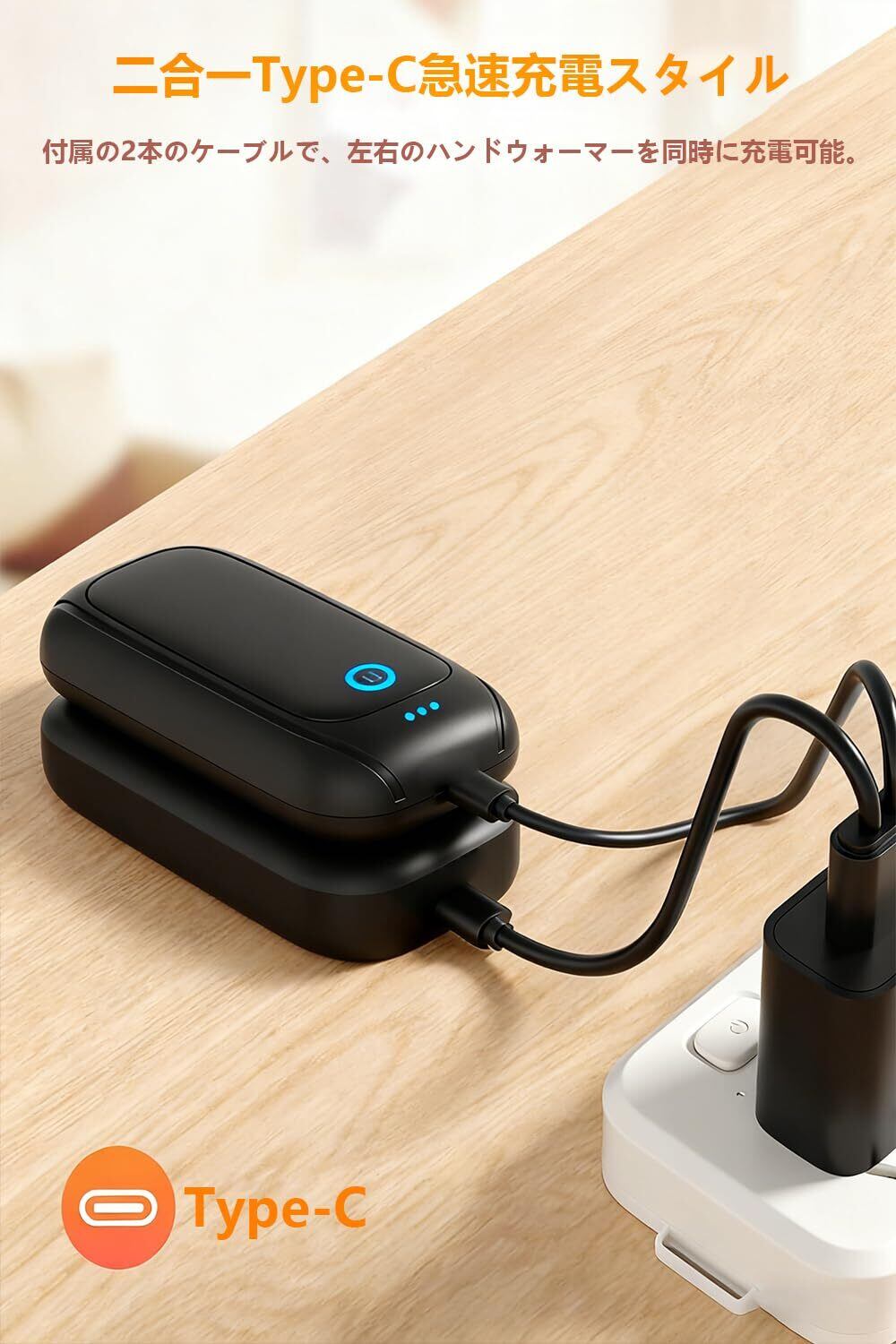 【充電式・繰り返し利用可能】Type-C充電ポートを搭載し、何度でも再利用できるエコ設計。乾電池方式ではないため、電池の買い替えコストが不要。過熱防止機能と過充電保護機能を備えた安全設計により、安心して充電操作を行えます。※ご注意※本製品の入力条件は5V/1Aです。5V/1Aに満たない出力環境では充電が完了しない場合があります。5V/1Aの出力仕様を満たすアダプターをご利用ください。同梱内容:磁気吸着式充電カイロ本体×2、Type-C 2in1充電ケーブル(300cm)×1(2台同時充電に対応)