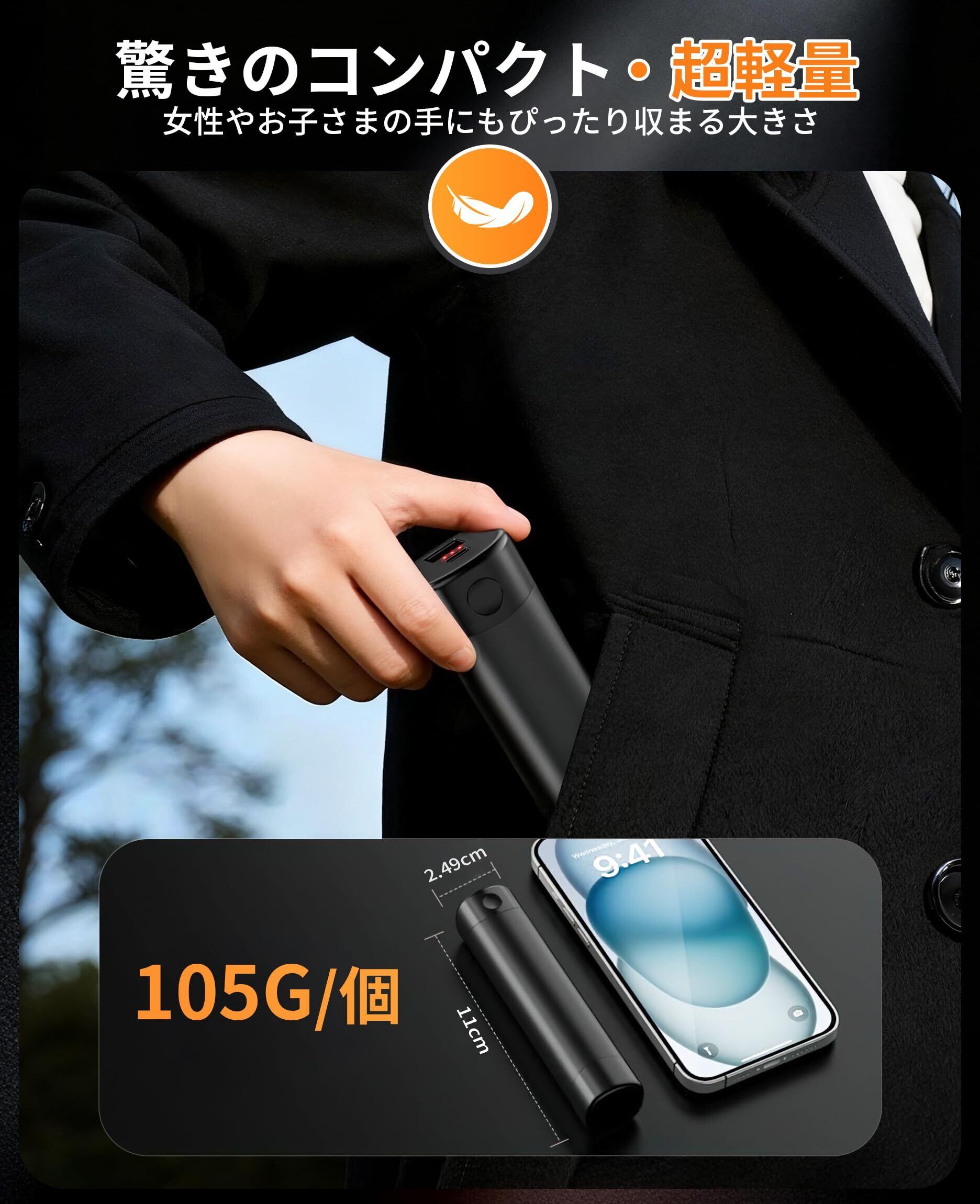 「小型で軽量なデザインはポケットにもすっぽり収まり、通勤や旅行に最適です。寒い朝の通学やアウトドアシーンでの活躍間違いなし!」
