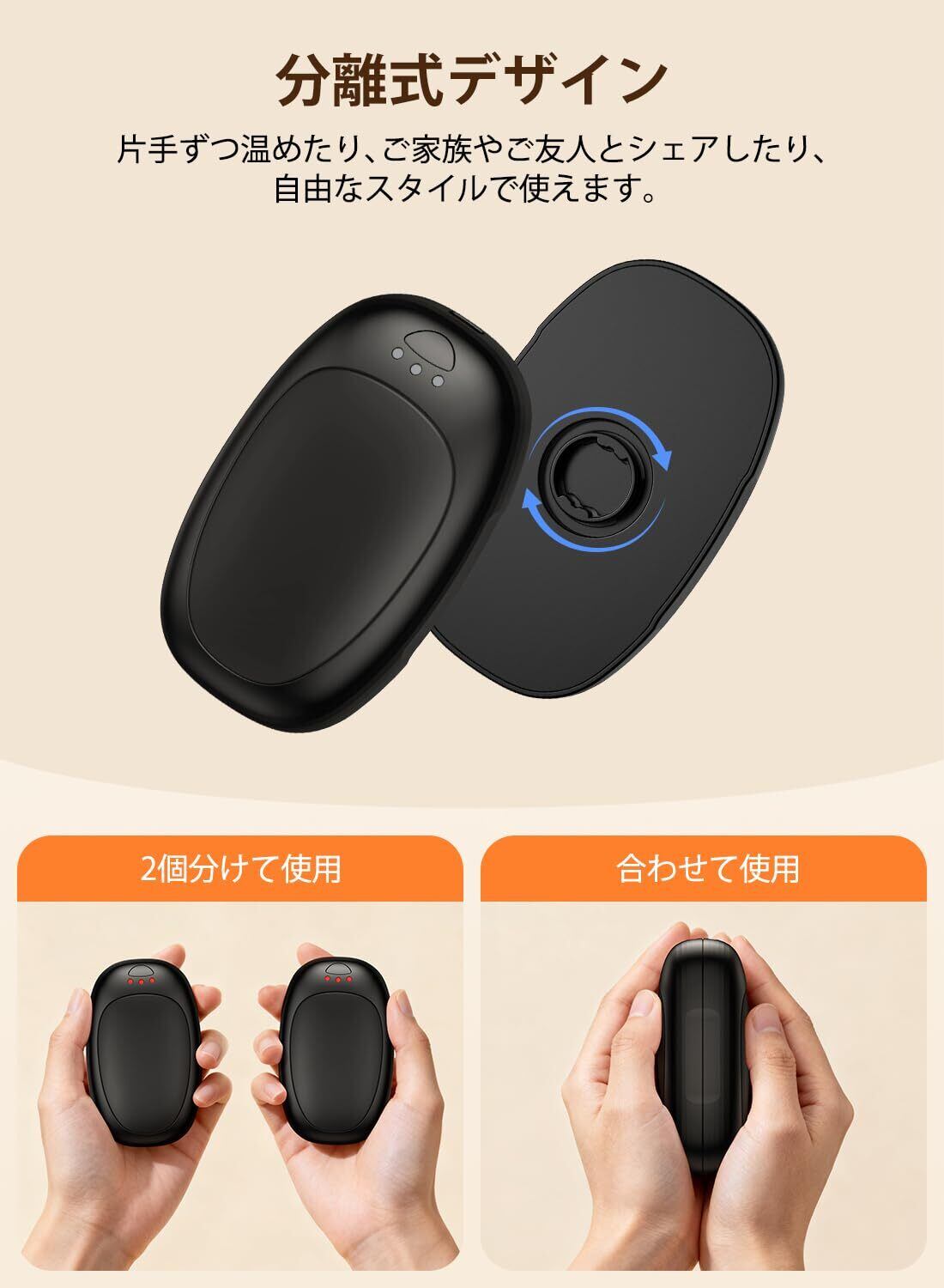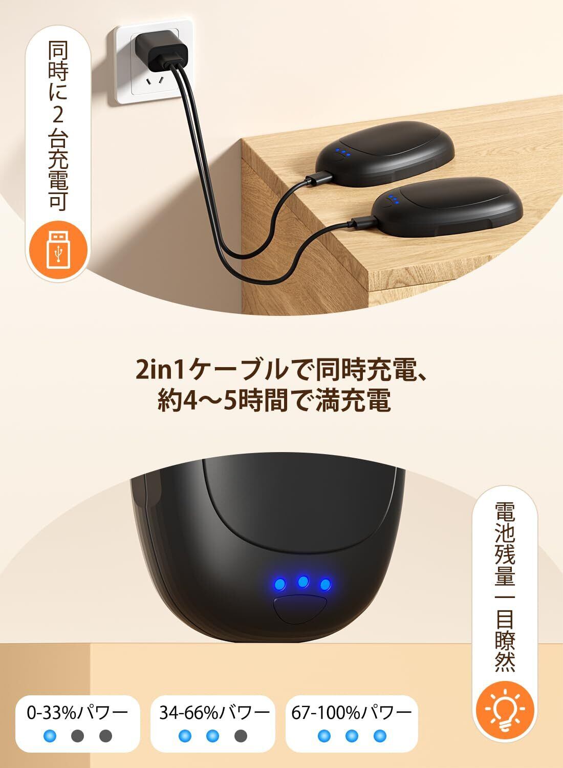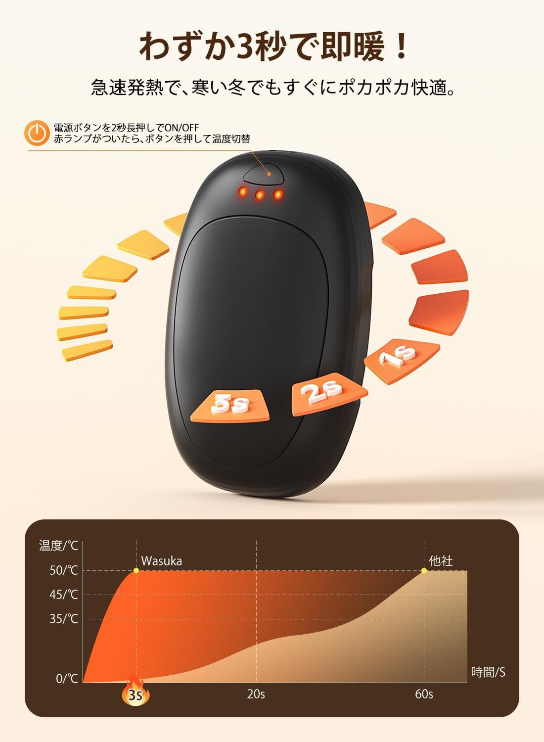 【2025新登場】Wasuka 充電式カイロ 電子カイロ 3段階温度調節 3秒急速発熱 【小型 超軽量 分離式設計】2個セット 長時間連続使用 USB充電式 電気 かいろ ハンドウォーマー 繰り返し利用 持ち運びやすい 防寒グッズ アウトドア 通勤 通学 旅行 プレゼント 冬の贈り物 (ブラック)