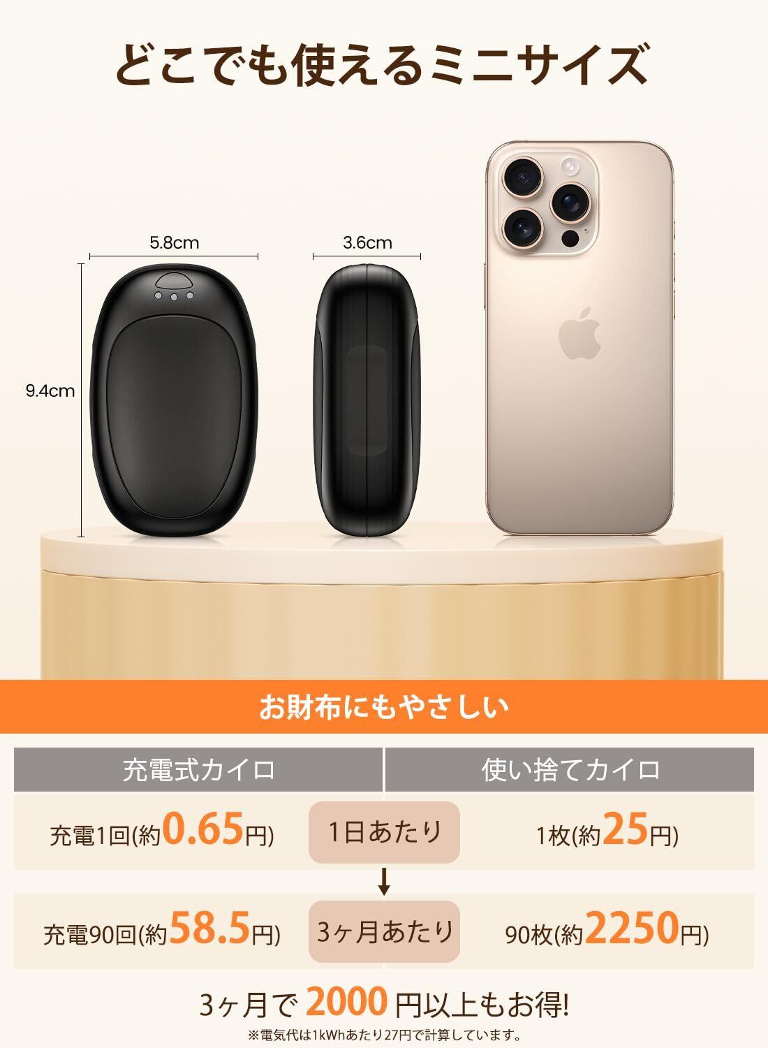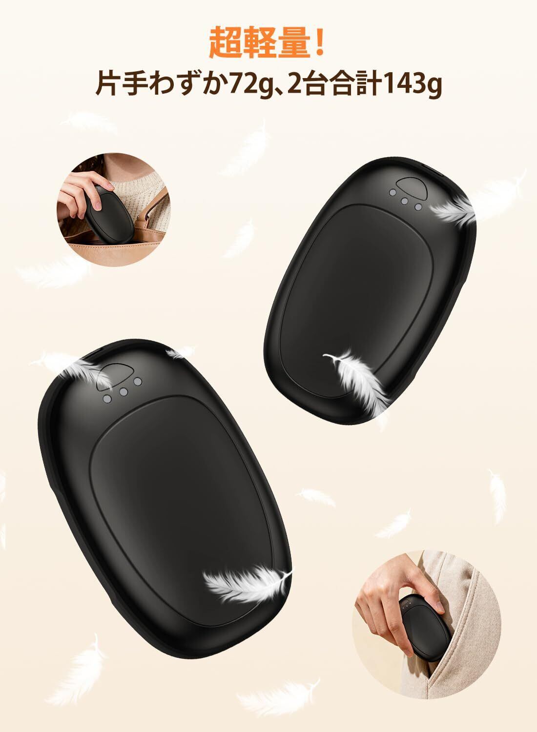 「本体は小型で超軽量、わずか105g。ポケットにもすっぽり収まり、旅行や散歩の際も気軽に持ち運べます。寒い時にもあなたの手元を温める頼もしい存在となります!」