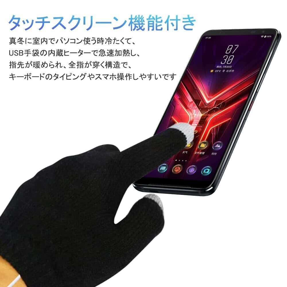 【タッチスクリーン機能付き 】真冬に室内でパソコン使う時冷たくて、USB手袋の内蔵ヒーターで急速加熱し、指先が暖められ、全指が穿く構造で、キーボードのタイピングやスマホ操作しやすいです。