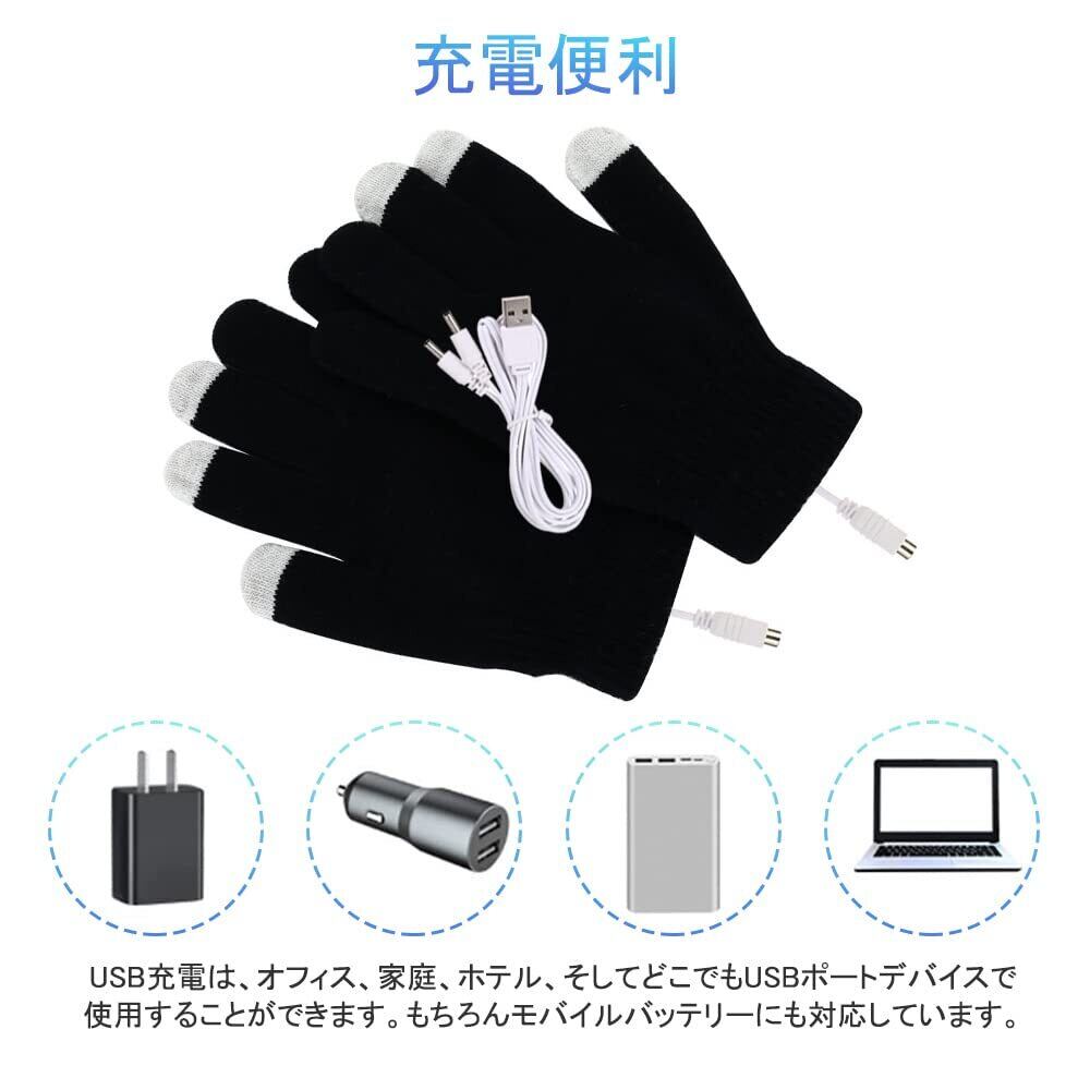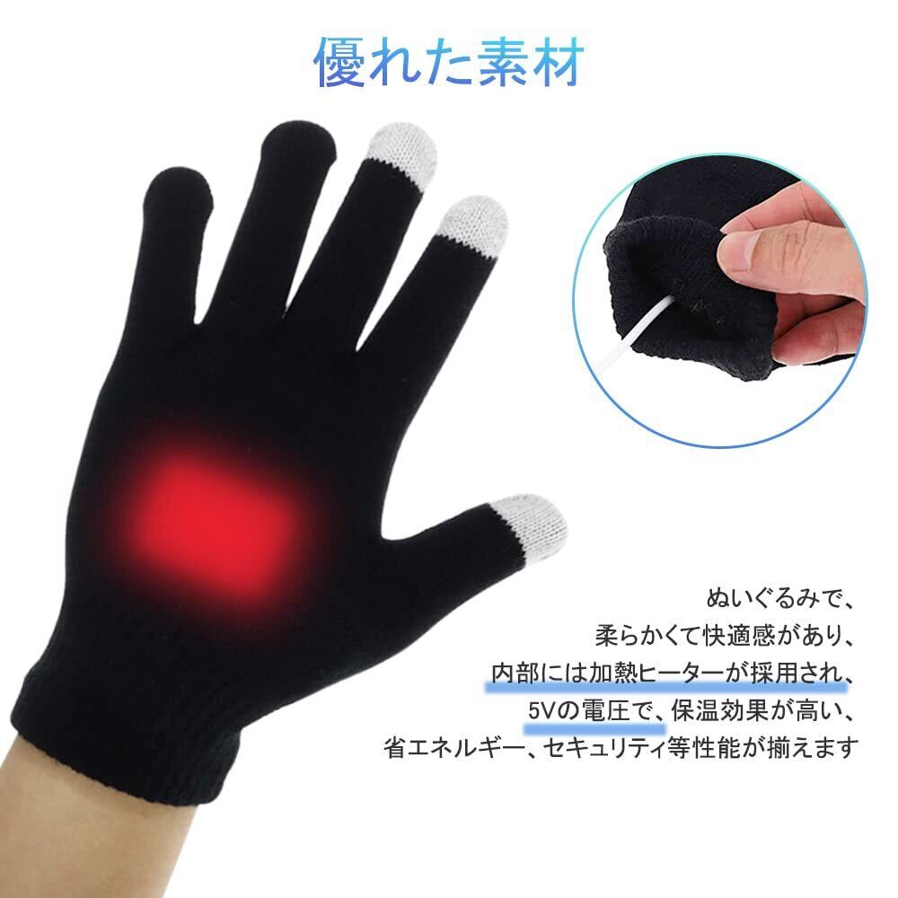 [YFFSFDC] 手袋USB接続で加熱 ヒーター内蔵電熱グローブ暖か手袋 PC作業 モバイルバッテリー 等対応防寒対策 快速加熱 (黒色)
