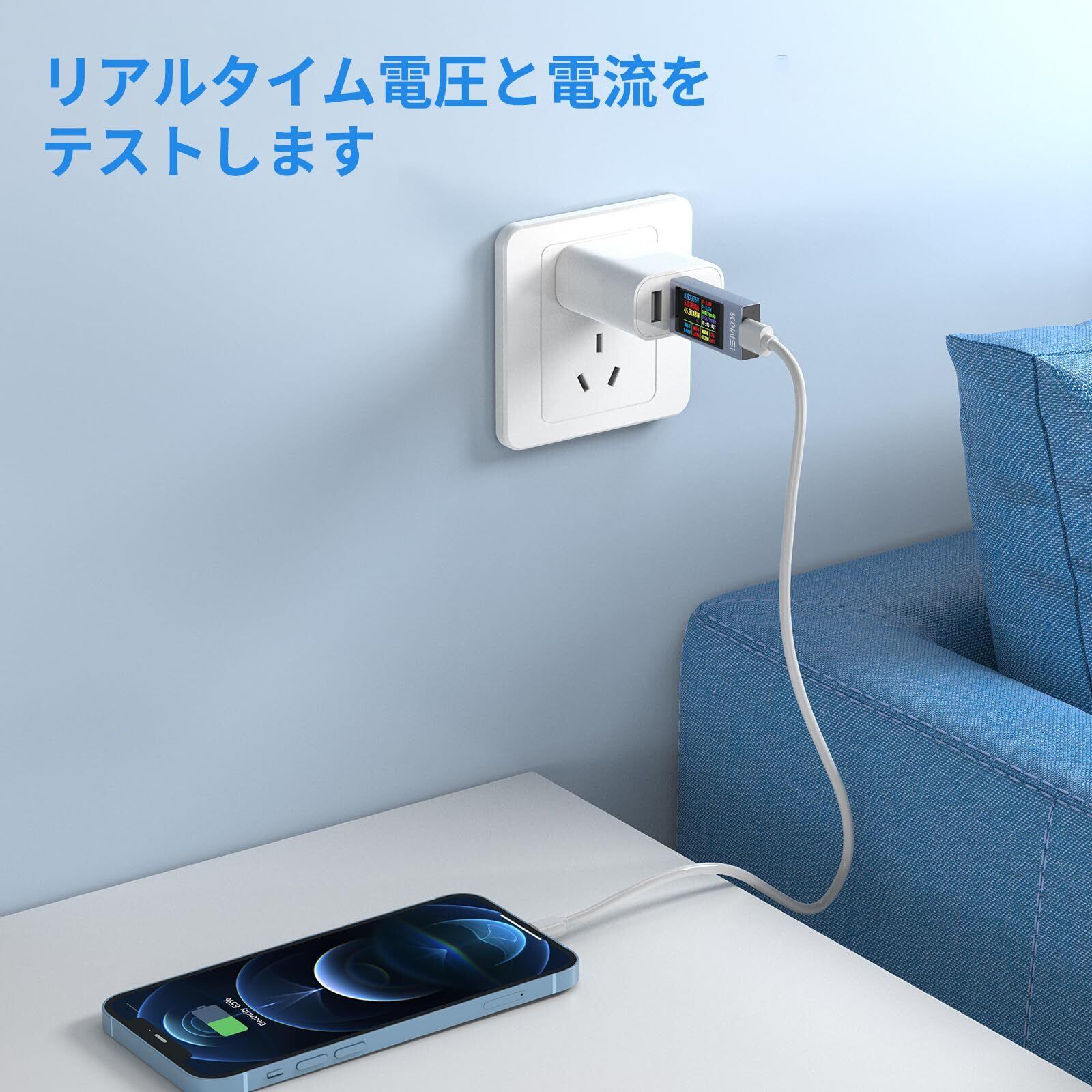 USBCテスター: このUSB テスターは、デバイスを充電中の最大電力、電流、電圧を記録し、電圧、電流、容量、電気量、電力、温度、充電時間を検出できるため、電源と品質のテストが容易になります。