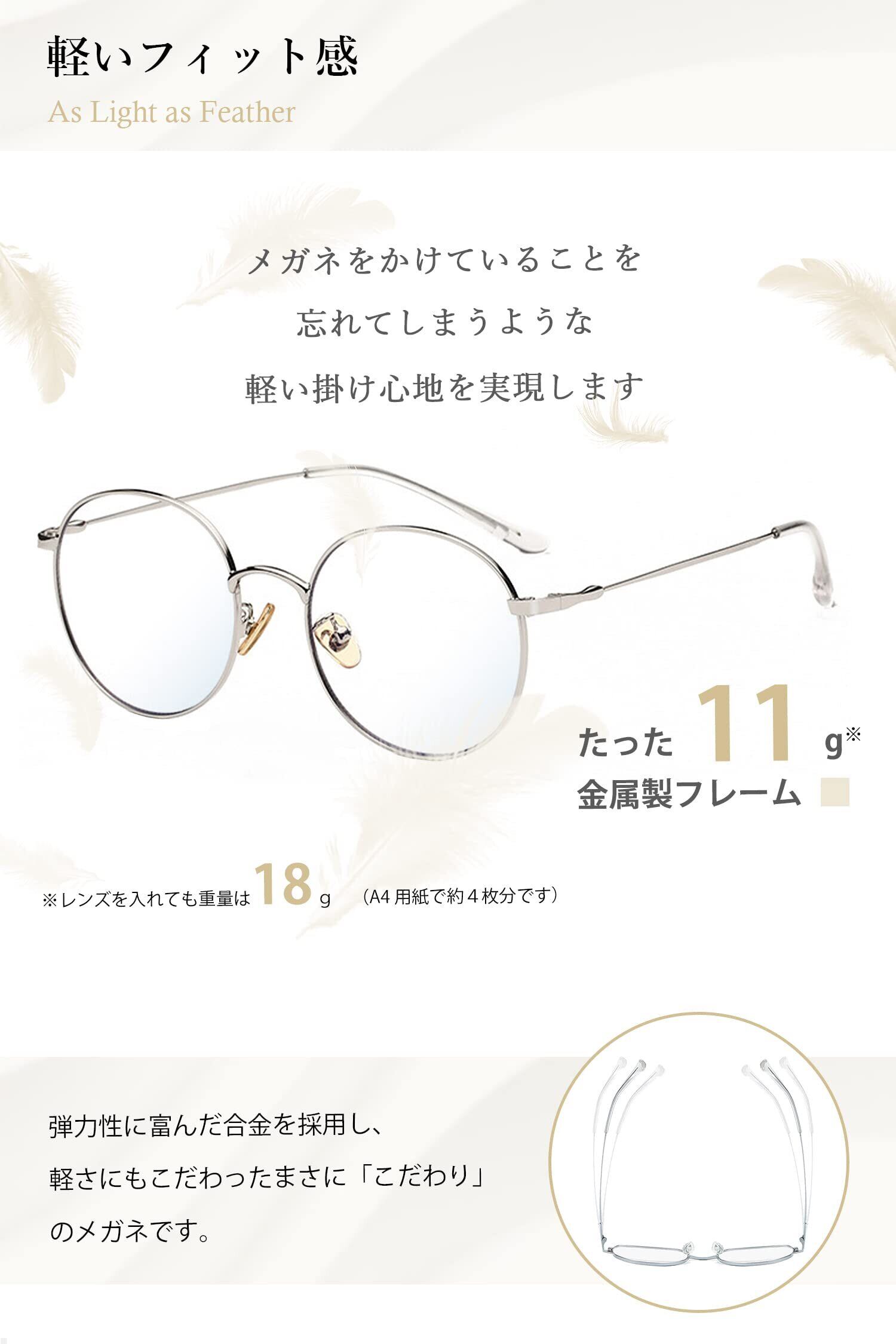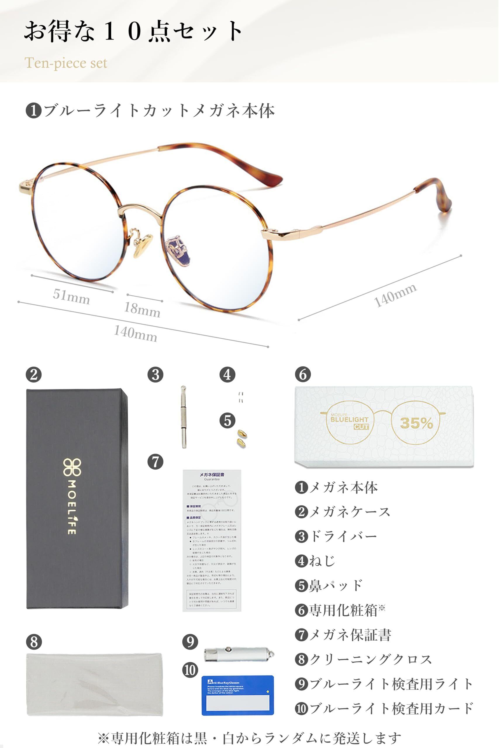 [モエライフ] MOELIFE ブルーライトカットメガネ 伊達 度なし PC オンライン授業 11g超軽量 丸 おしゃれ レディース メンズ ケース付き