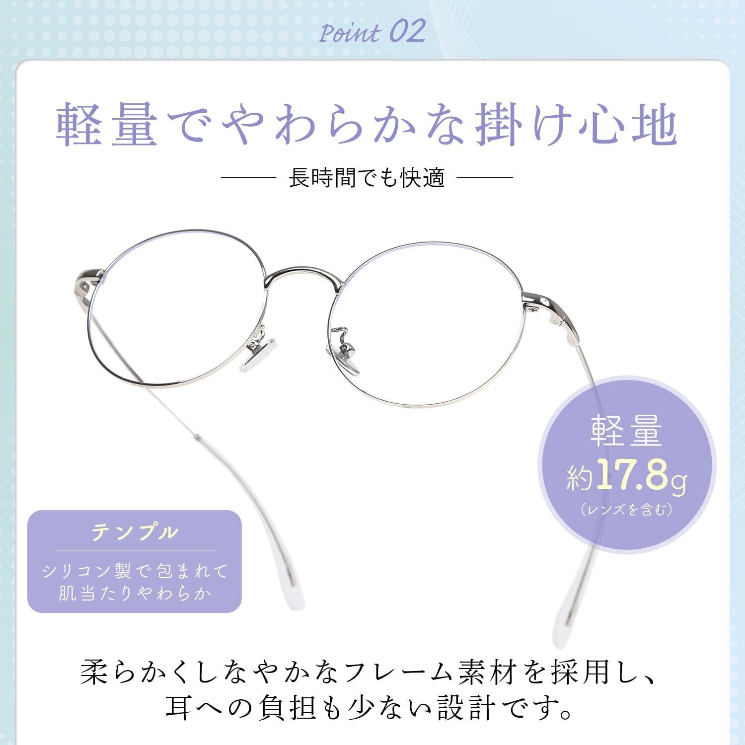 「UVカット機能を備えており、紫外線を99%カットします。デジタルデバイスを使う際だけでなく、外出時にも安心して使用できる頼もしいメガネです。」
