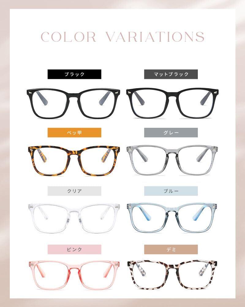 カラー:ブラック、マットブラック、べっ甲、グレー、クリア、ブルー、ピンク、デミ