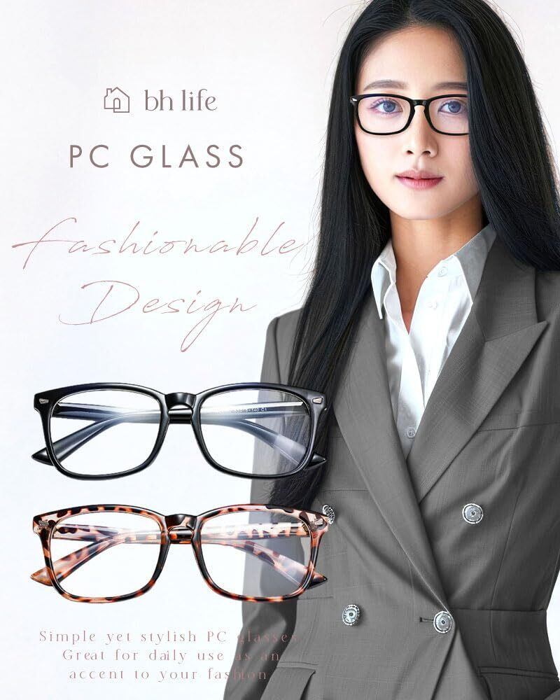 「『bh life』のブルーライトカットメガネは、デジタルライフを快適にサポートするために設計されたスタイリッシュなアイテムです。UVカット機能を備えており、長時間のパソコン作業やスマホ利用でも目をしっかりと守ります。」