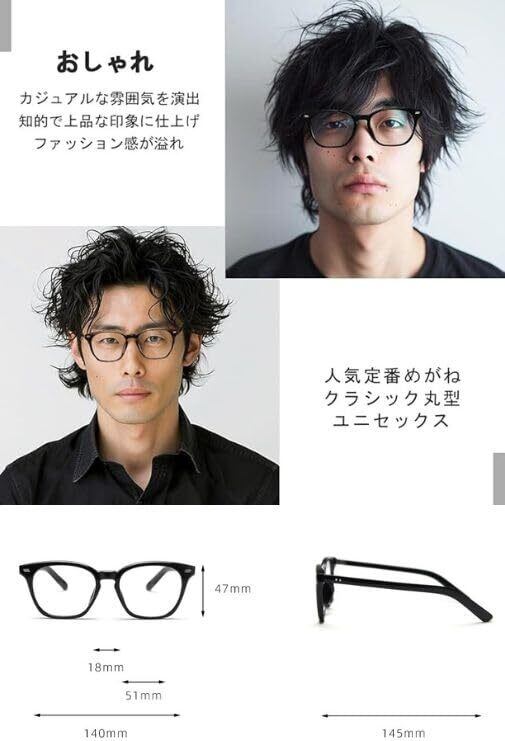 「透明レンズと洗練されたTR90フレームは、シンプルながらもおしゃれ感を演出。カジュアルなスタイルからビジネスファッションまで、様々なコーディネートにマッチし、あなたの魅力を引き立てます。」