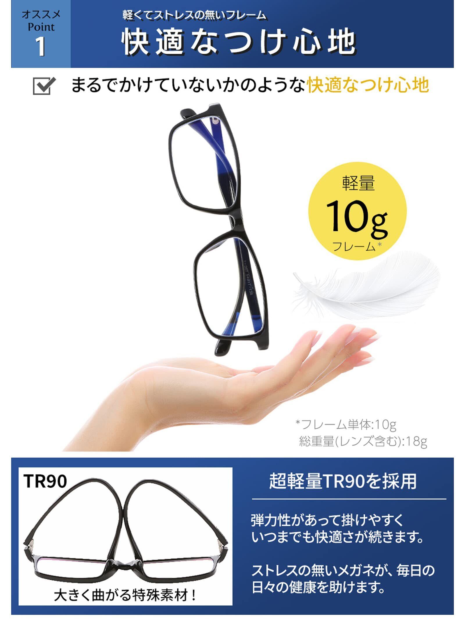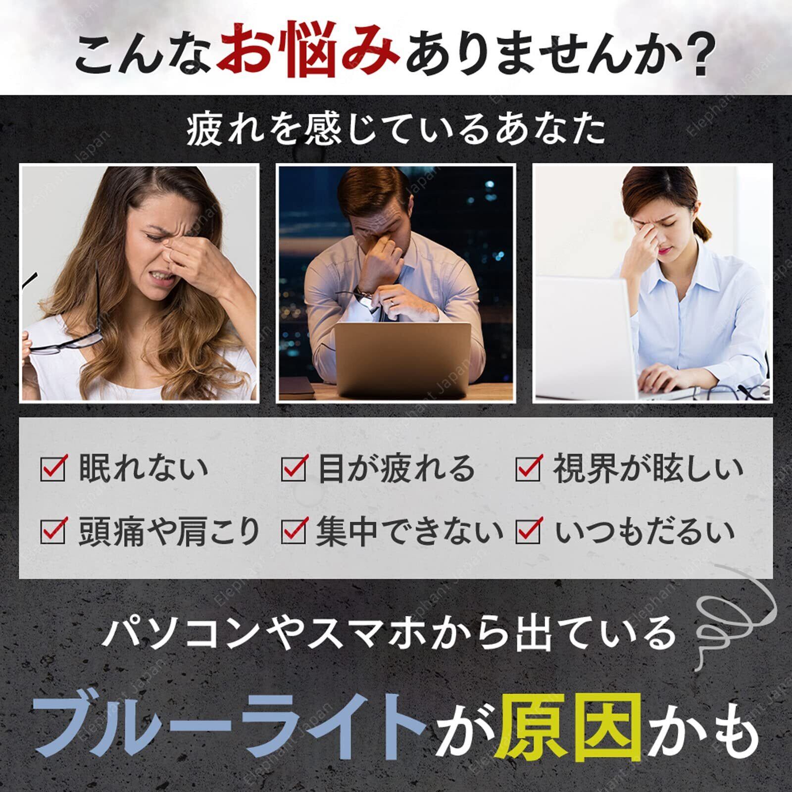 「パソコンやスマホから発せられるブルーライトを効果的にカットし、目の疲れを軽減します。目の健康を大切にしつつ、快適なデジタルライフをサポートします!」
