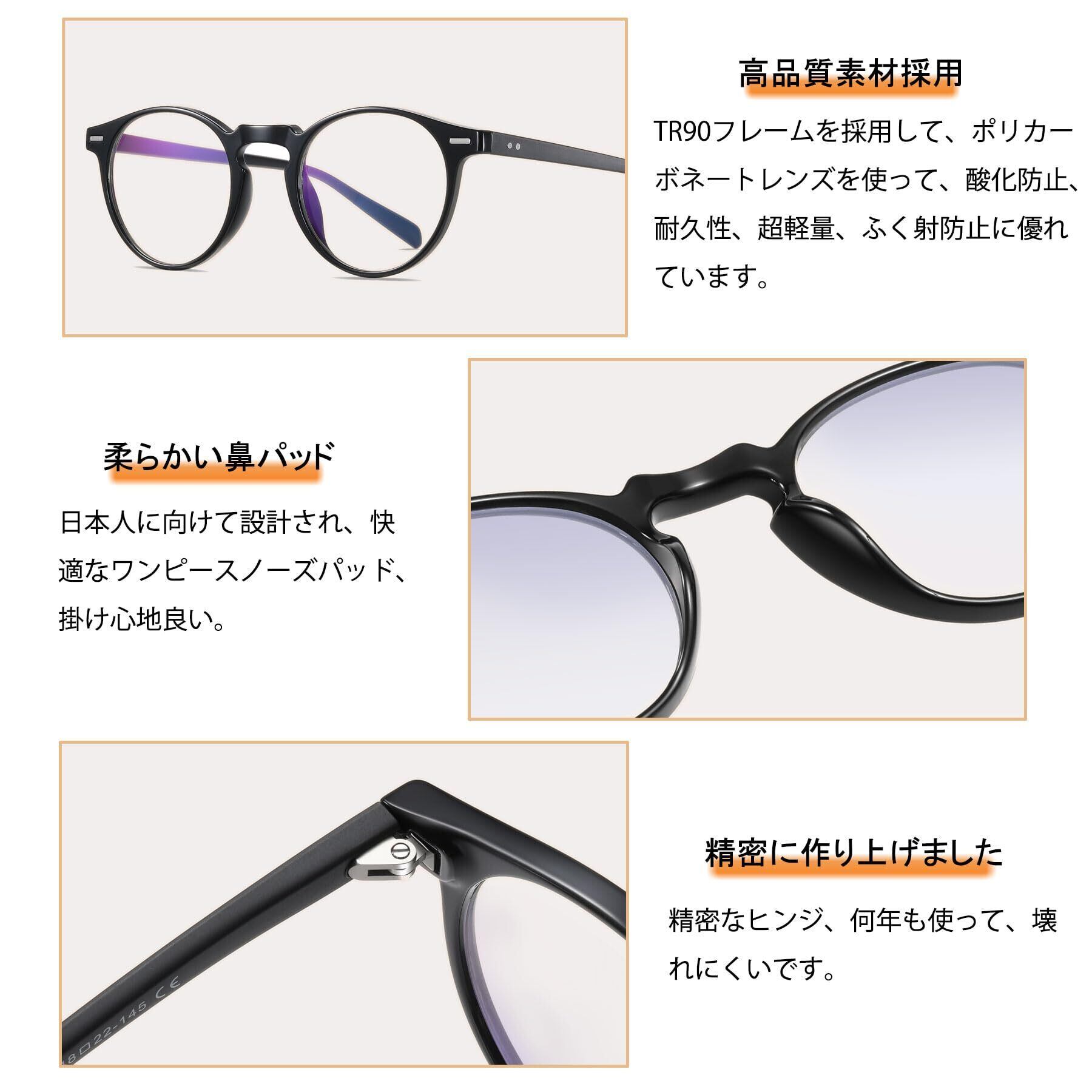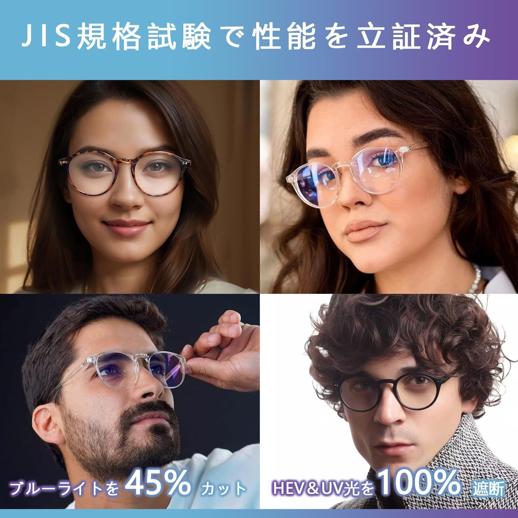 【ブルーライトカット メガネ・UV400保護】高品質のブルーライト透明レンズを採用し、可視光線透過率は高く、JIS日本規格 日本眼鏡普及光学器検査協会にて検査済み!スマホ、テレビやパソコンなどのスクリーンからの有害な光をカットします、そして紫外線カット率99%以上、目を守ってくれます。