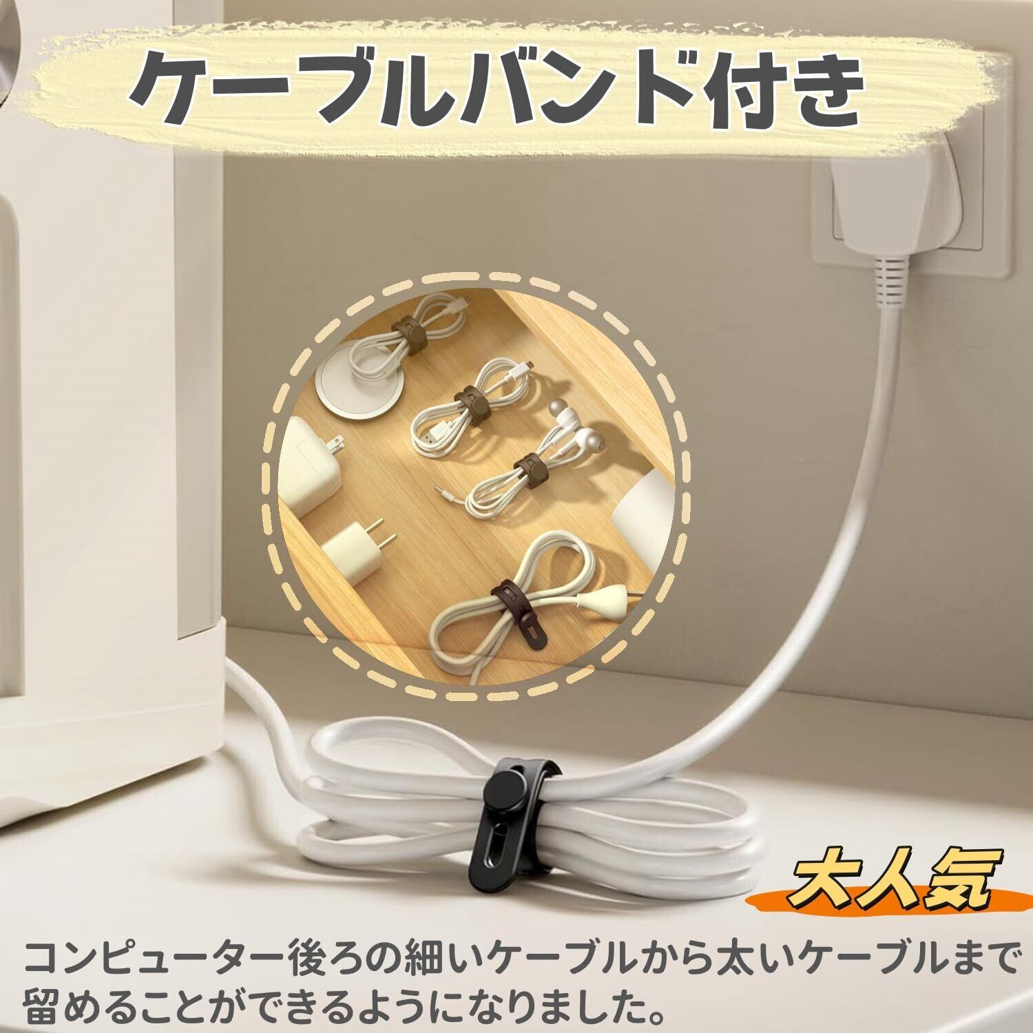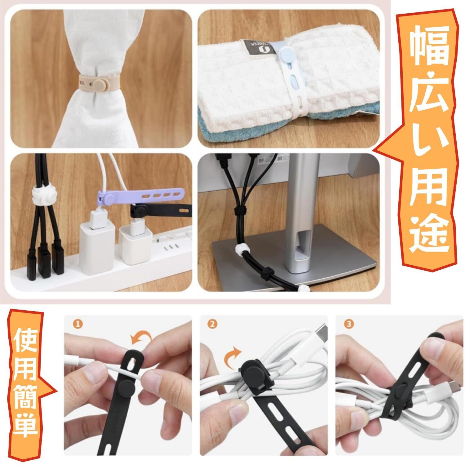 【大人気ケーブルバンド付き】すべすべしっとりとした優しい質感のバンドは非常に柔らかく、鋭いエッジがない為、結びたいアイテムを傷つける心配は全くありません。コンピューター後ろの細いケーブルから太いケーブルまで留めることができるようになりました。