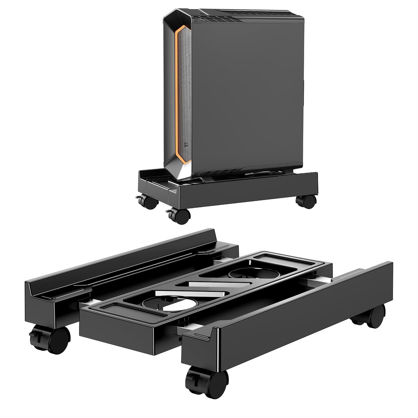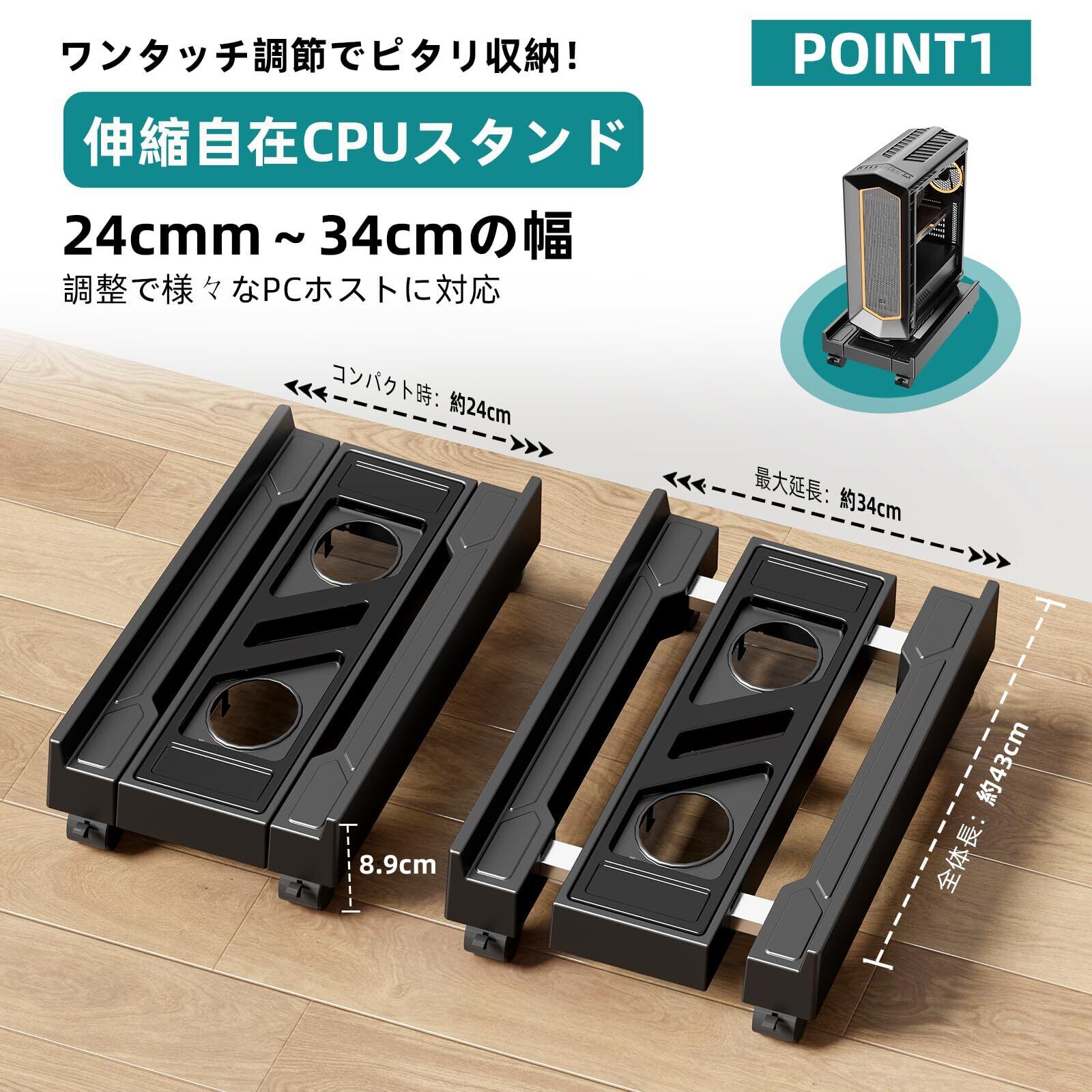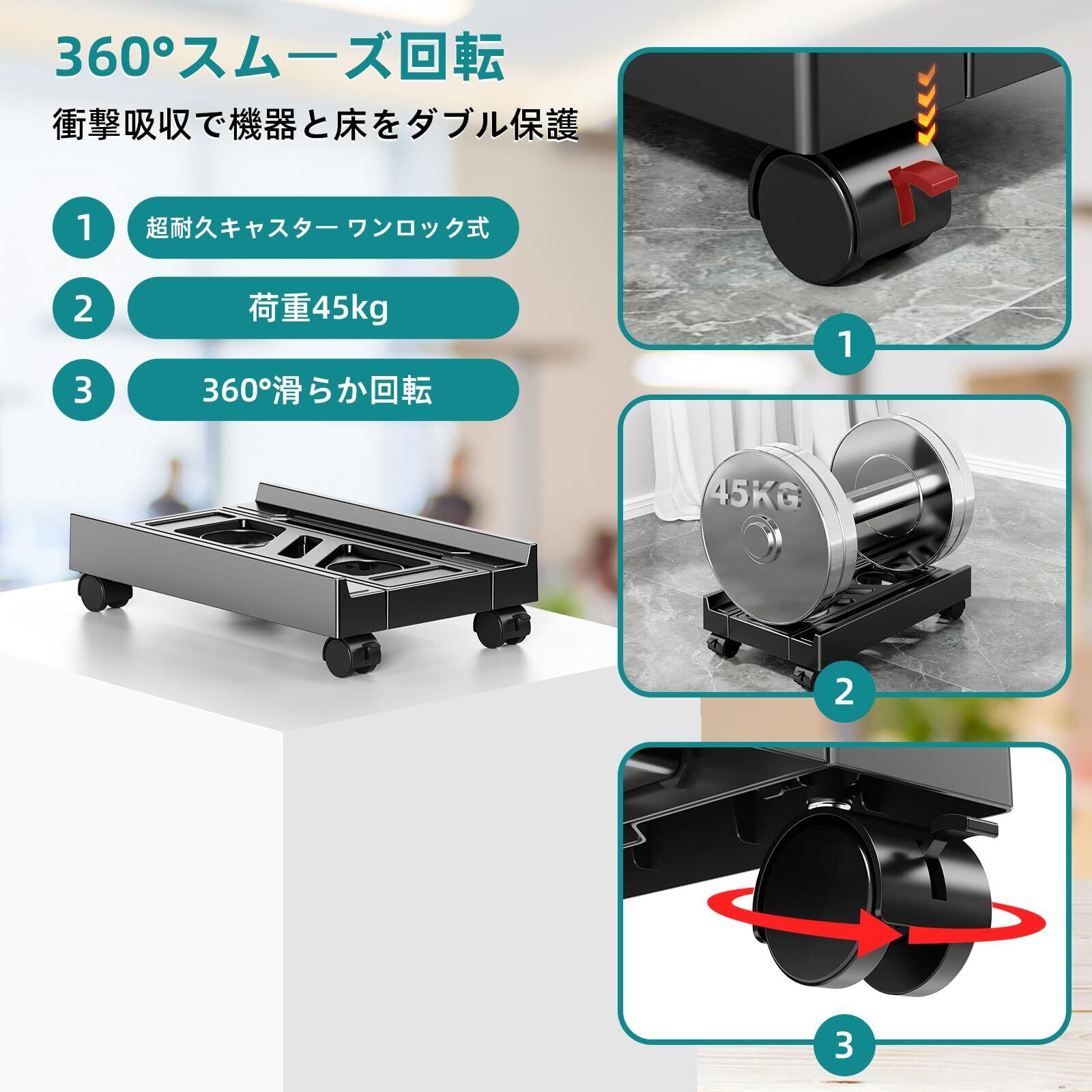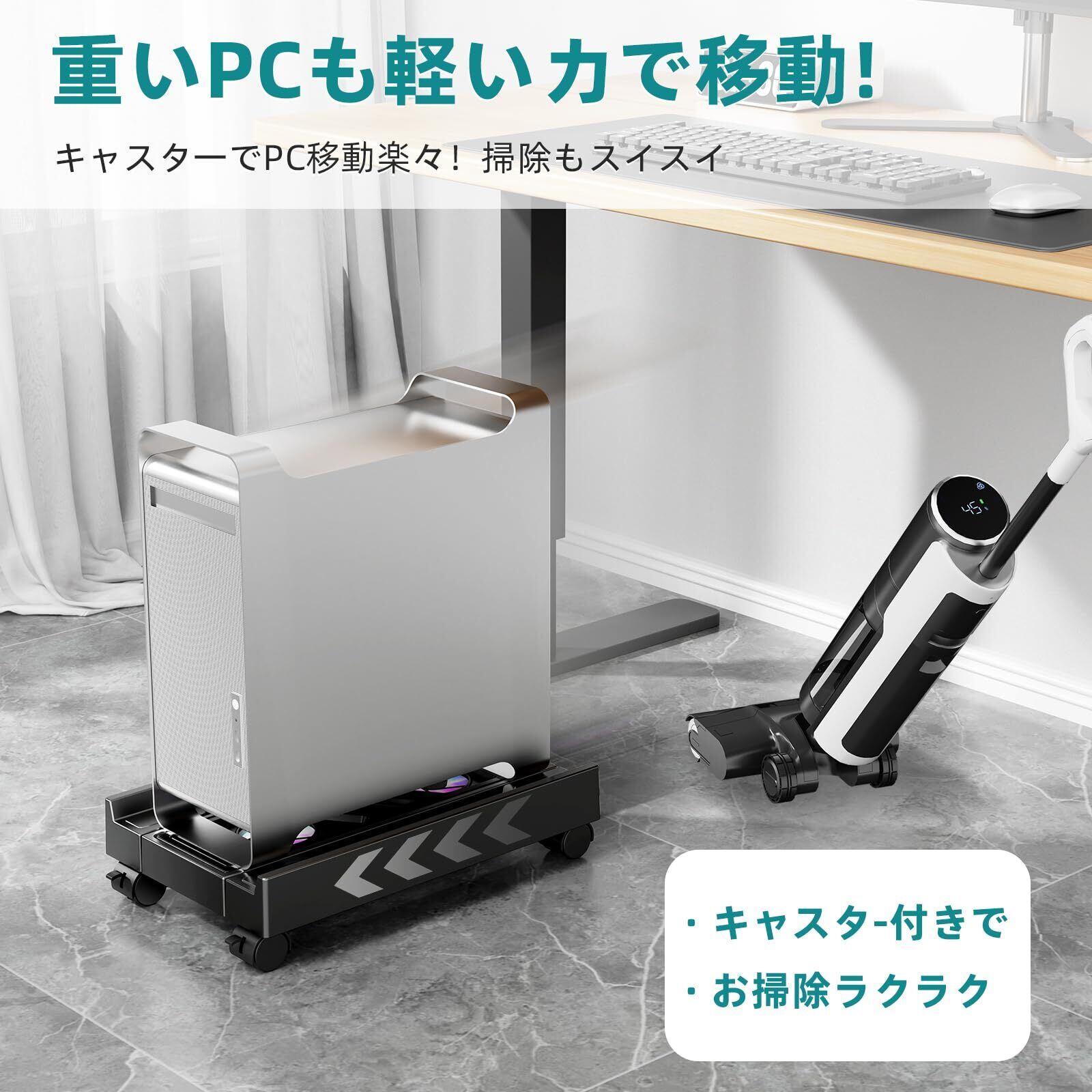 CPUスタンド デスクトップ pc 置き台 パソコンラック PCキャスター キャスター付き台車 PC台 サイズ調整 無段階調節 ストッパー4か所 熱対策 オフィス デスク ワーク 耐荷重45kg 簡単設置