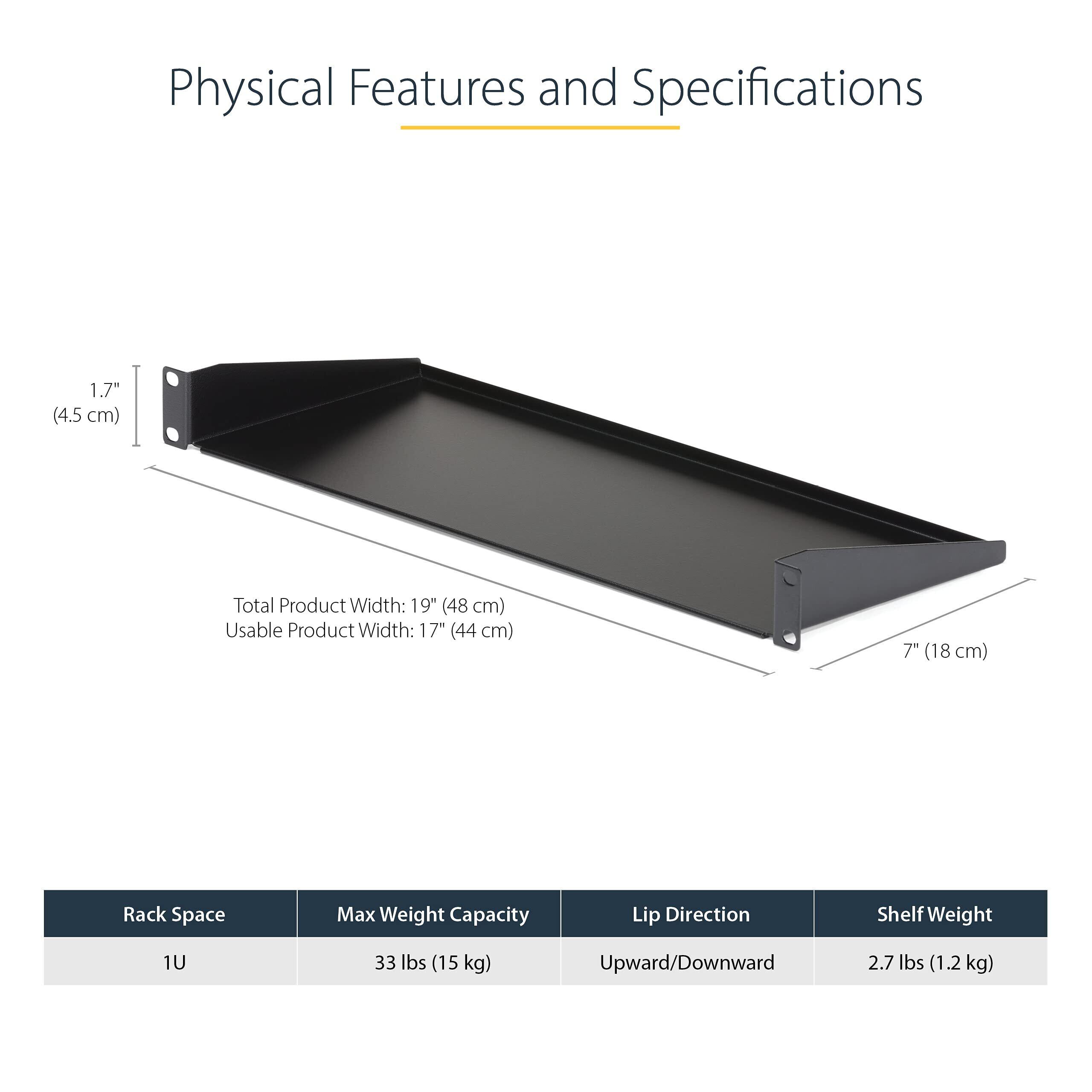 **[StarTech.com 奥行き7インチ ユニバーサル固定式ラックマウント型棚板] / 1U / 耐荷重15kgの冷延鋼板使用!**