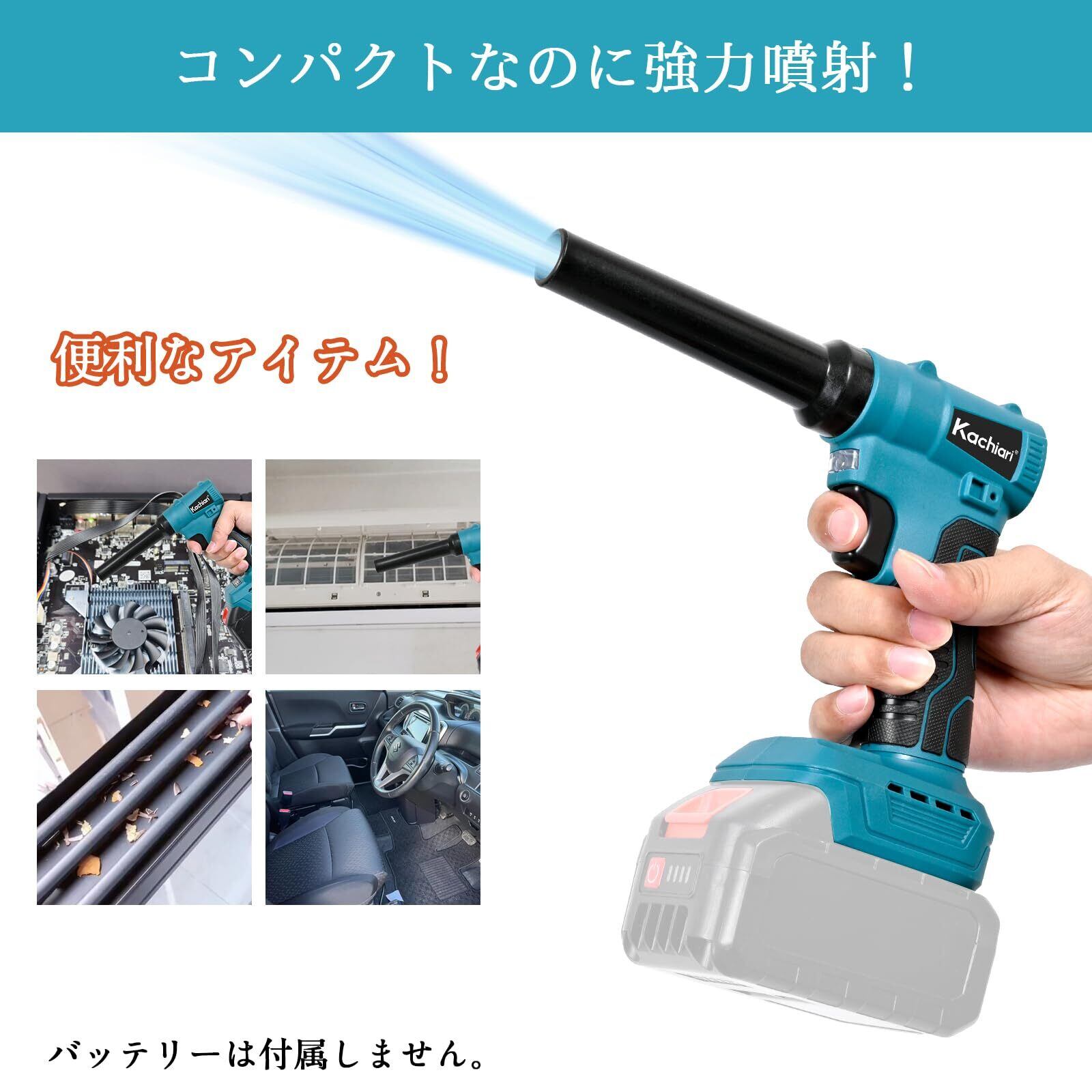 「本製品は最大100m/sの風速を実現しており、ホコリや水滴を瞬時に吹き飛ばします。布団の圧縮や、エアベッド・エアマットの膨らませにも対応。さまざまな用途に使えるので、家庭用からアウトドア用まで幅広く活用できます。」