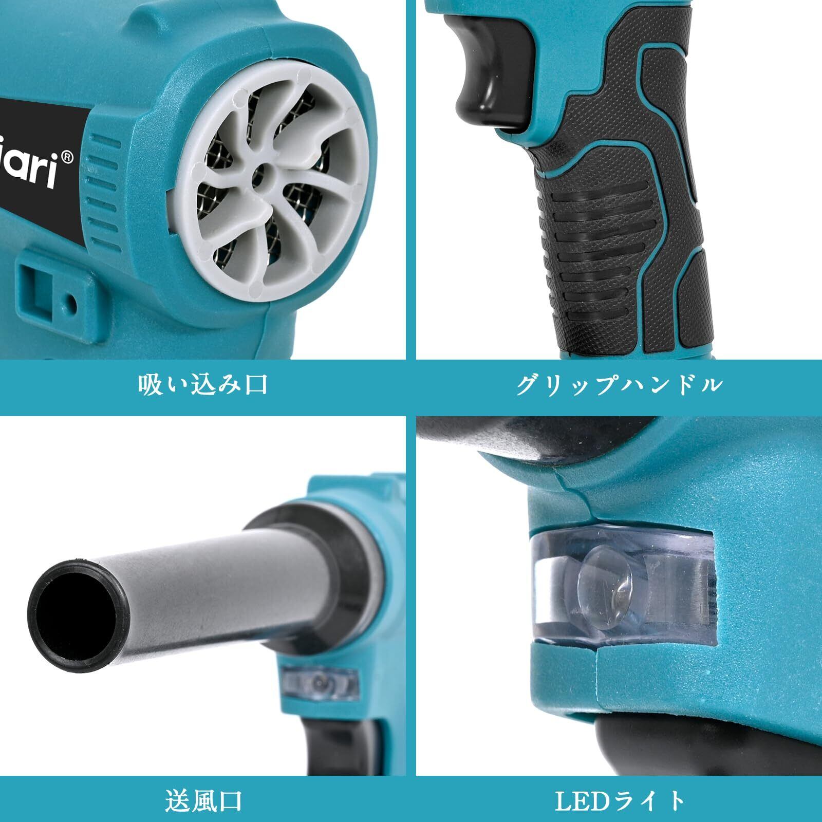 「BL1830、BL1840、BL1850B、BL1860Bなどの18Vバッテリーに対応し、強力なパフォーマンスを発揮します。持ち運びにも便利で、充電を気にせず、さまざまなシーンで活用できるのが魅力です。」