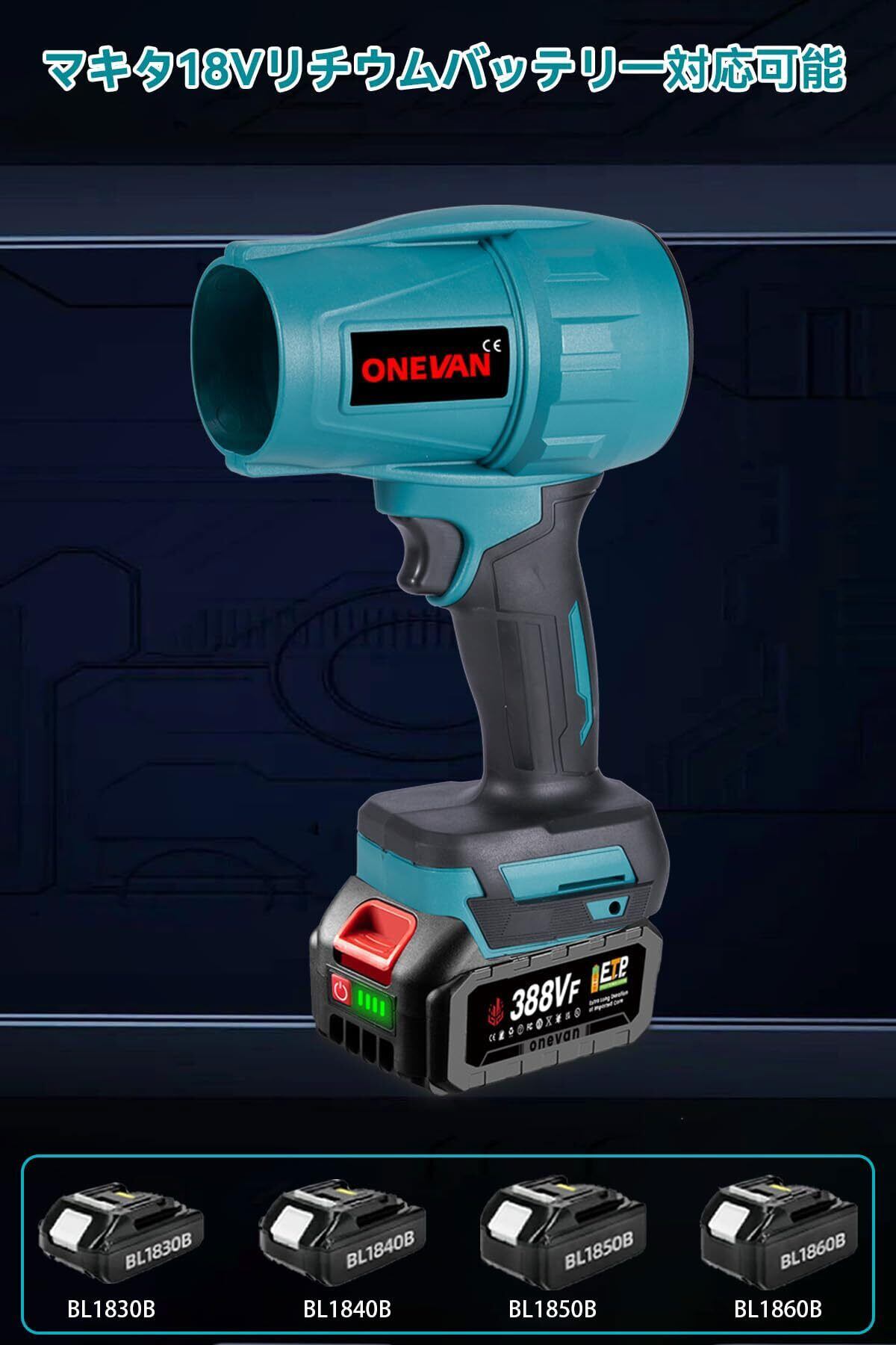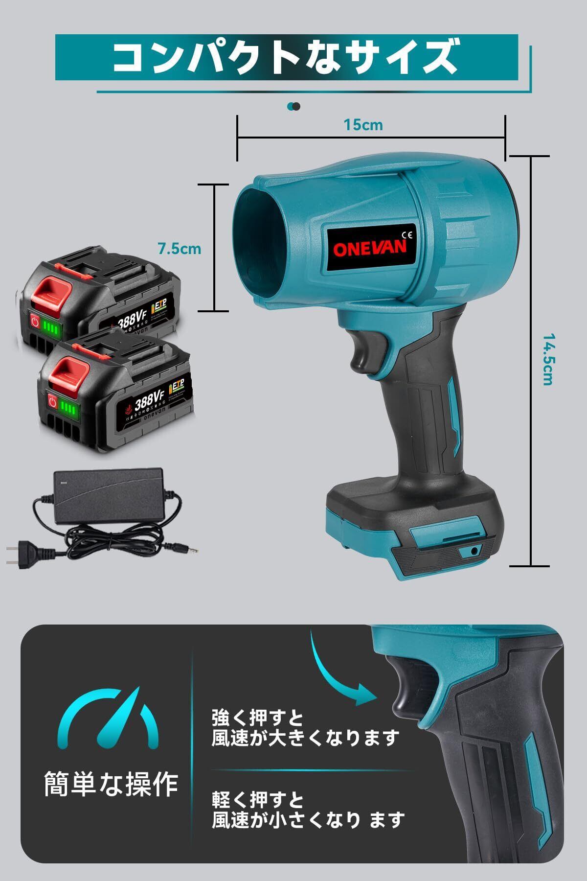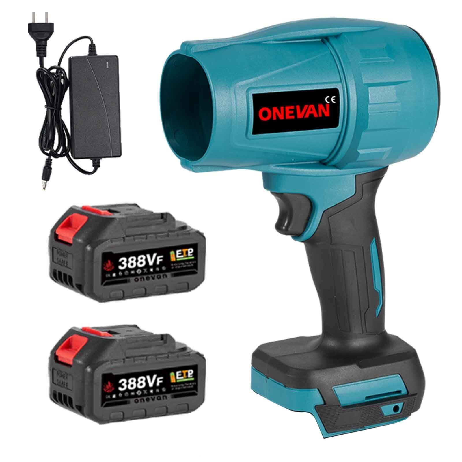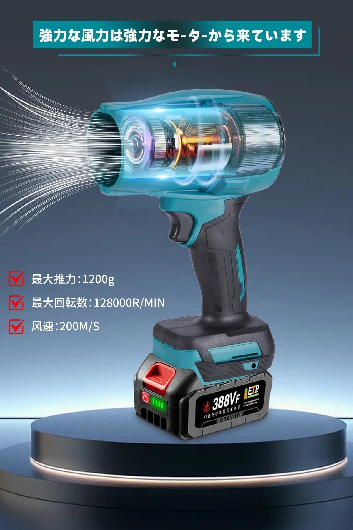 ONEVAN ブロワー エアダスター 電気エアダスター 60m/s 超強力 120000rpm ジェットドライブロワー ターボジェットファン ブロワー ジェットドライブロワー 高速回転 高耐損性 高温耐性 長持ち コードレス 機械掃除/キーボード/エアコン/洗車/キャンプ/アウトドア (青い+本体+電池*2)