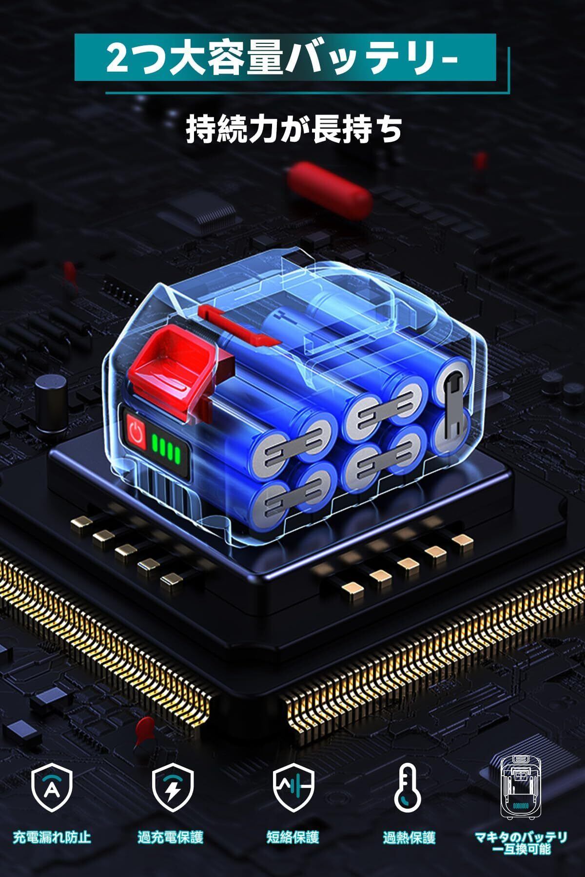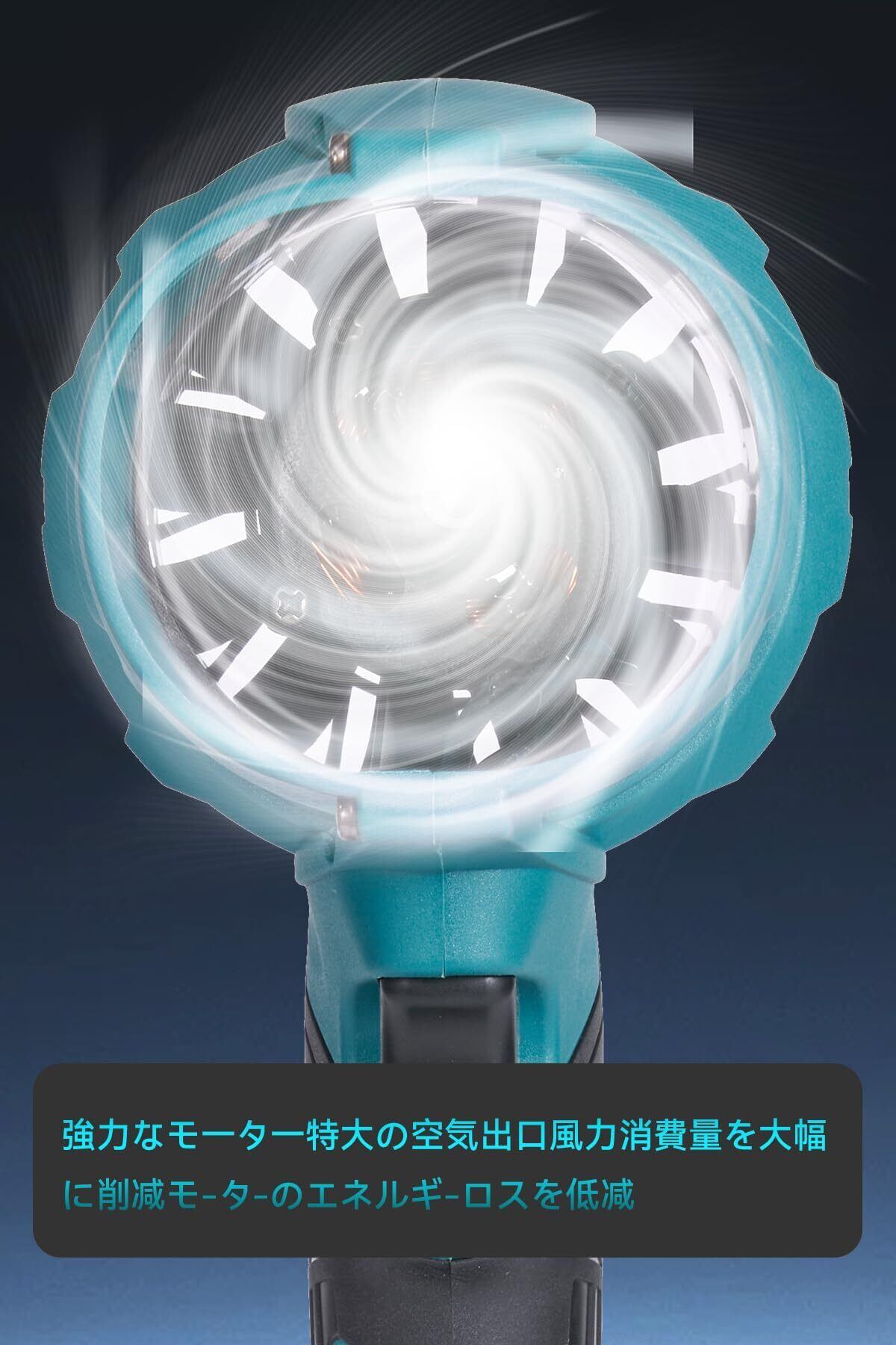 【マキタバッテリー互換】ブロワー、バッテリーが提供するエネルギーに応じて、平均して約17〜20分間全負荷で使用でき、当社のターボジェットファンは充電して繰り返し使用できるため、エネルギーを節約できます。