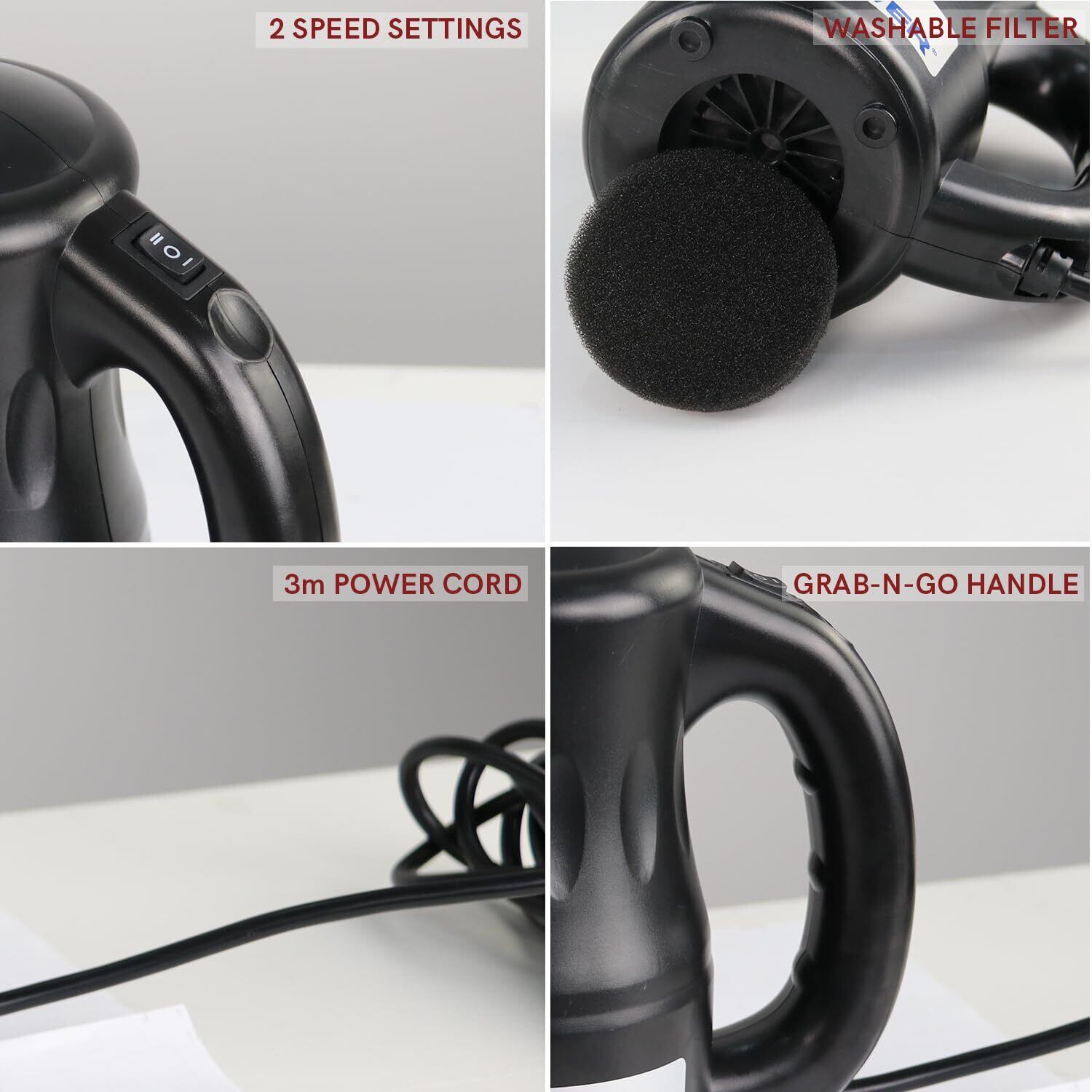 シンプルな操作と軽量:使いやすい2速制御調整スイッチを内蔵したハンドヘルドエアダスターにより、わずか1kgの重量でどこでも操作できます