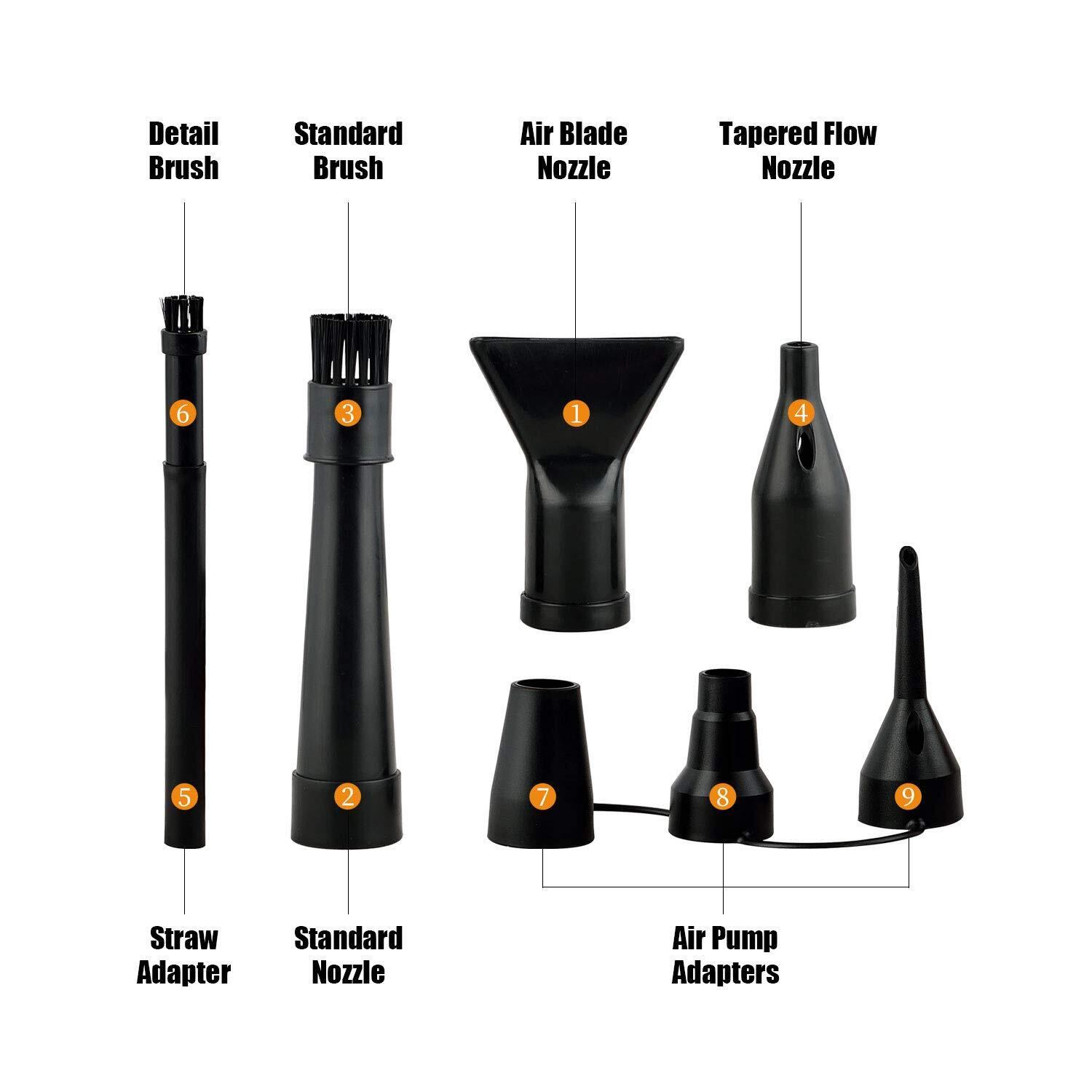 マルチユース:缶詰の空気の代わりに、A-2はコンピューター、ラップトップ、車内、カメラ、モデル車両、ブラインドでより効果的に使用されます.9つの使いやすいノズルアタッチメントを備えた他の多くのアプリケーション
