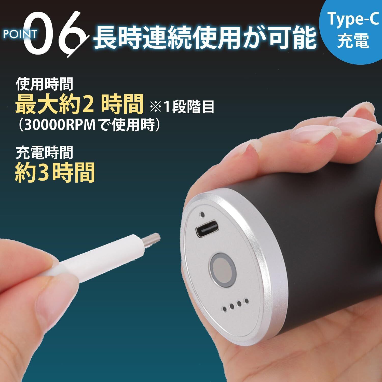 - USB-C充電式でスピーディーな充電を実現!