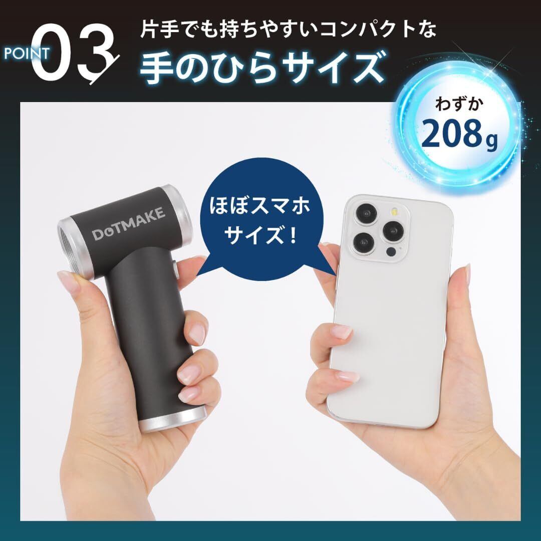 エアダスター 電動エアダスター ブロワー 【日本セラー販売ブランド DOT MAKE】日本国内付き 小型 軽量 208g 5段階風力調整 120,000RPM 4種類ノズル付き USB-C充電式 多用途(PC 掃除/キーボード/車内/洗車/エアコン/花粉 等) 【収納ポーチ付き】 SP-AIR100