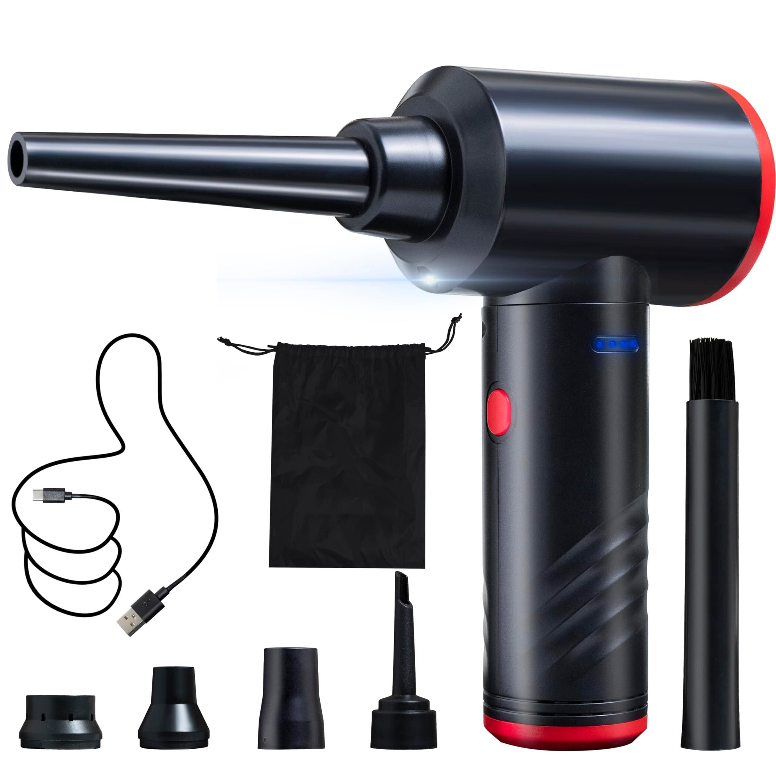 エアダスター 電動 エアブロワー 150000RPM高速回転 段階風量調整 USB Type-C充電式 6種類ノズル付き 6000mAh PC掃除機/キーボード/家具/車内/エアコン/洗車 収納ボックス付 簡単操作 軽量 ライト付き 日本語取扱説明書 (ブラック+レッド)