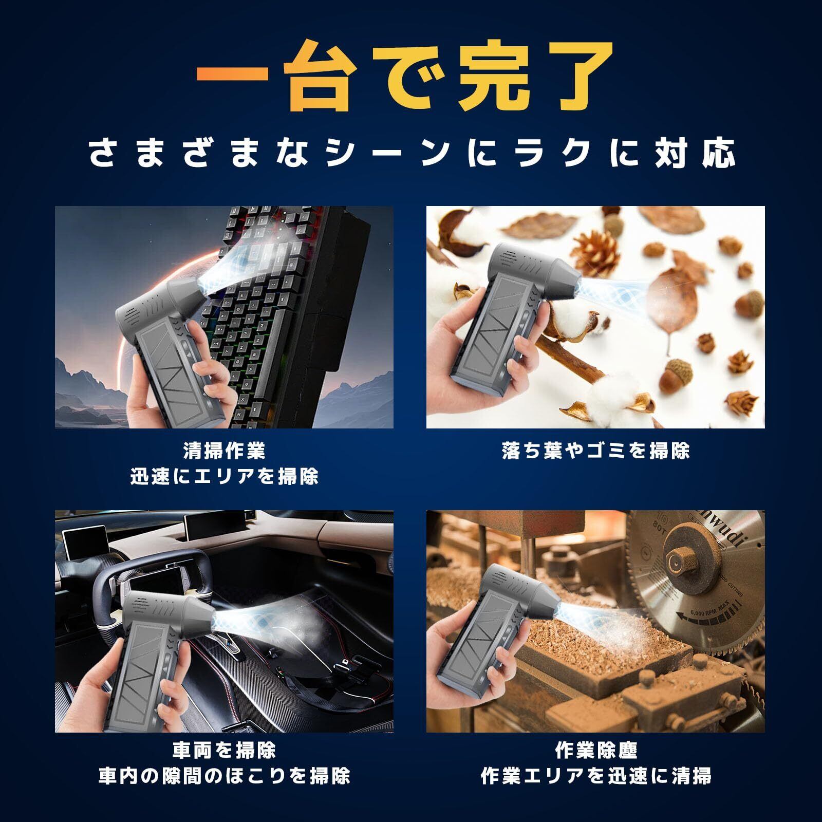 エアダスター 電動エアダスター ブロワー 強力 200000RMP高速回転 85m/sを超える圧倒的な風速 2in1多機能 5000mah大容量バッテリー ハンディクリーナー 4時間使用 小型 コードレス USB Type-C充電式 4段階風量調整 充電式 軽量 多用途(PC 掃除/キーボード/車内/エアコン/洗車用等) 日本語取扱説明書付