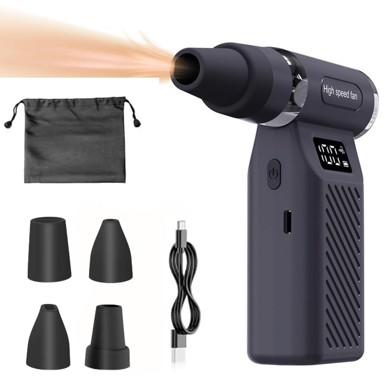 【100段階風速】風量は利用シーンに合わせてお好みの強さに調整出来る100段階調整可能のエアダスターです。ボタンを押すだけで、風量は徐々に大きくなったり小さくなったりします。ディスプレイで風量レベルとバッテリー残量を確認可能。 【スマホサイズのエアダスター・驚異のコンパクト感】本体サイズはわずか150×100×36mm、重量298gの手のひらサイズ。片手操作に最適な設計でありながら、パワフルな噴射でホコリを一掃する電動ブロワーです。見た目のコンパクトさだけでなく、操作性にも徹底的にこだわり、高い実用性を実現。狭い隙間やホコリのたまりやすい場所の掃除を強力にサポートします。製品にはメーカーがついています。お使いになりて何かお困りのことがあれば、遠慮なくお問い合わせください。