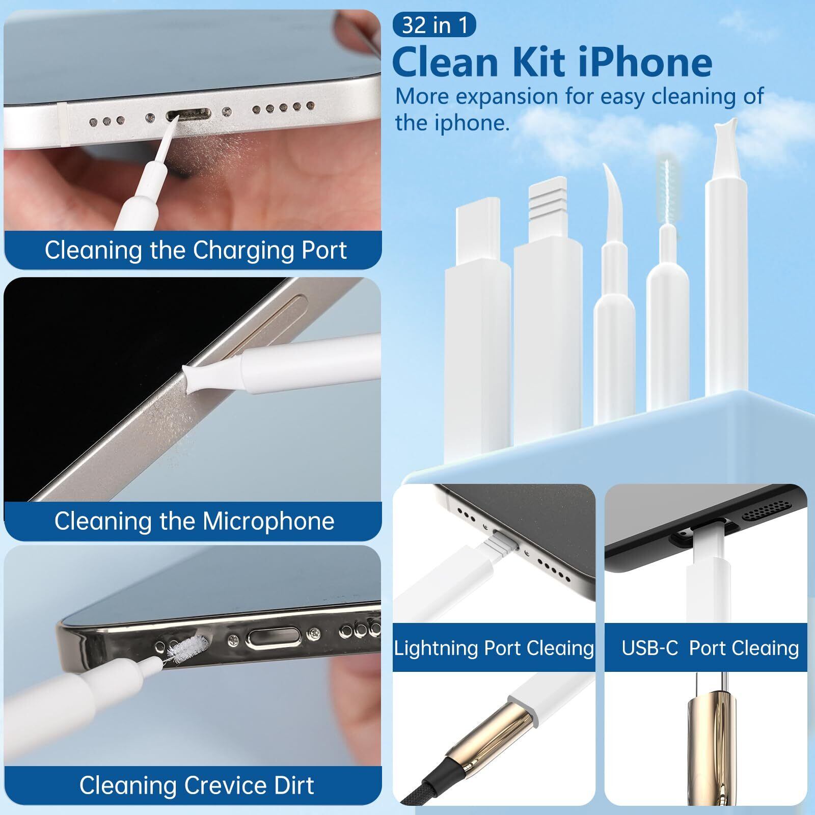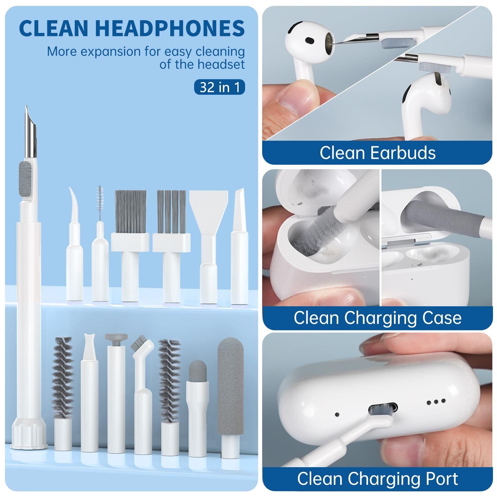 Inesore for 32 in 1多機能クリーニングキット,携帯電話クリーニングキット、充電口クリーナー、タッチペン、SIMカードツール、キーボードブラシ、スピーカーブラシ、iPhone、AirPods、ノートパソコン、iPad、キーボード、MacBook、イヤホン、カメラレンズ付き電子クリーニングキット(ホワイト)