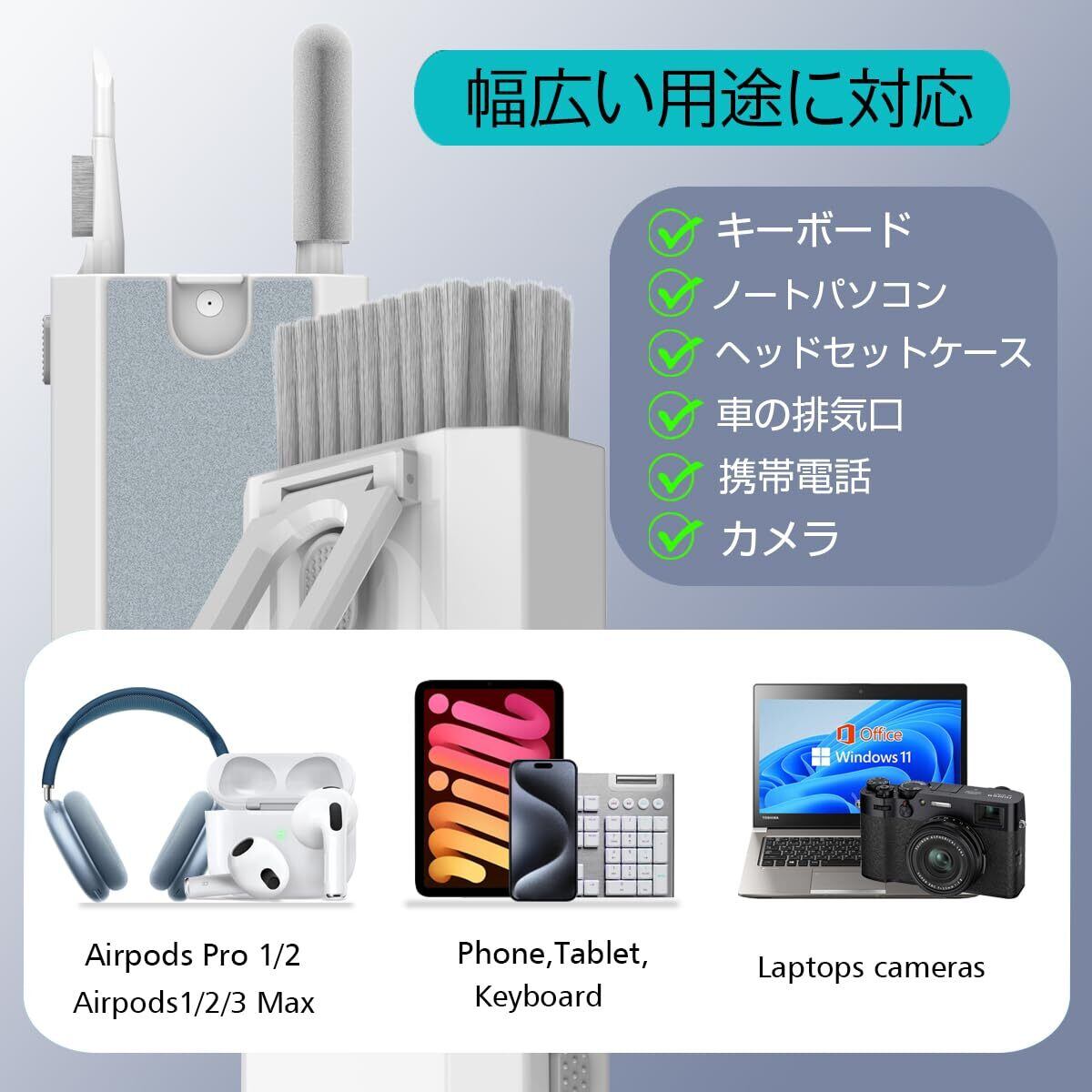 8 in 1多機能クリーニングツール イヤホン掃除道具 Airpods 1/2/3/Pro用 キーボード掃除 指紋除去 ほこりの除去 携帯電話/タブレット/AirPods/ヘッドホン/iPad/充電ボックスクリーニング/カメラなど対応 軽量で持ち運びに便利 ホワイト