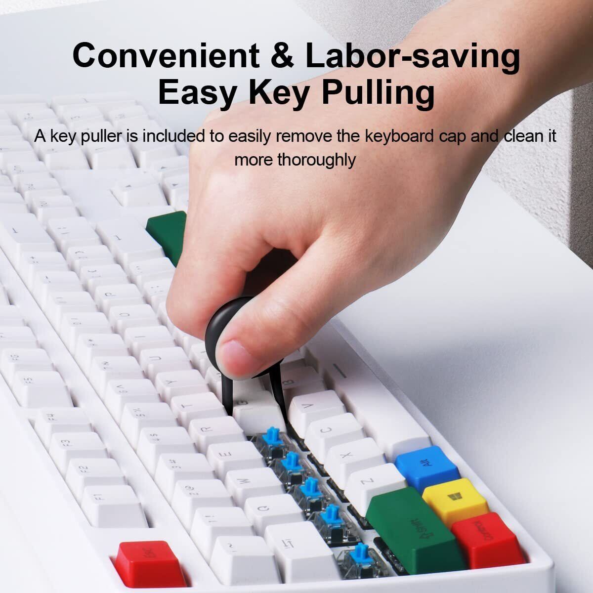 キーを引っ張るのが簡単:シンプルなキートップ引き抜き工具を使用すると、キートップの交換が面倒でなくなり、キートップの取り外しにより徹底的に掃除ができます。