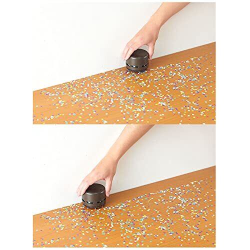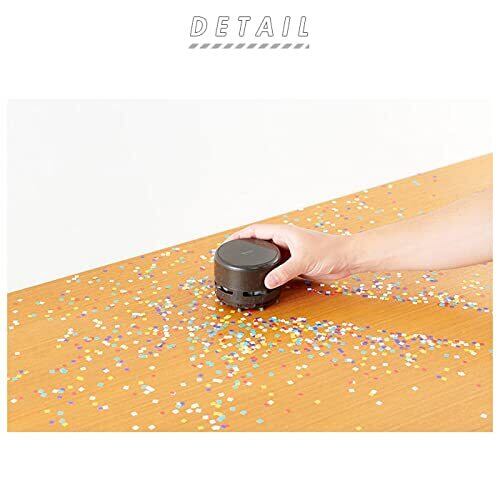 「この卓上クリーナーは、強力な吸引力を持ちながらも静かな動作が特徴です。小さなゴミやホコリをしっかりとキャッチし、クリーンなデスク環境を保ちます。デスクやノートパソコンの隙間まで、無駄なくきれいにすることができます。」