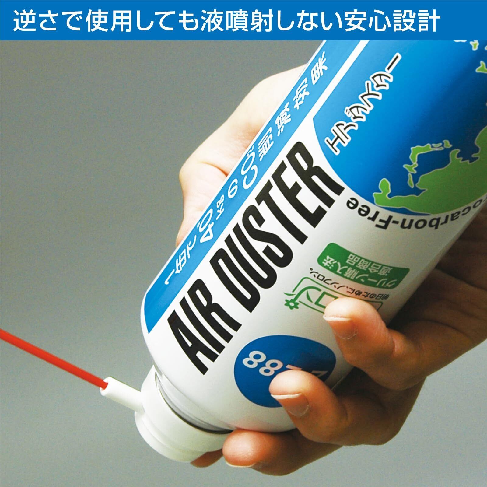 「フロンガスを使用せず、環境への負荷を軽減した設計です。掃除やメンテナンスで空気を吹きかける際にも安心してご使用いただけます。特に電子機器など、敏感な場所での使用に最適です!」