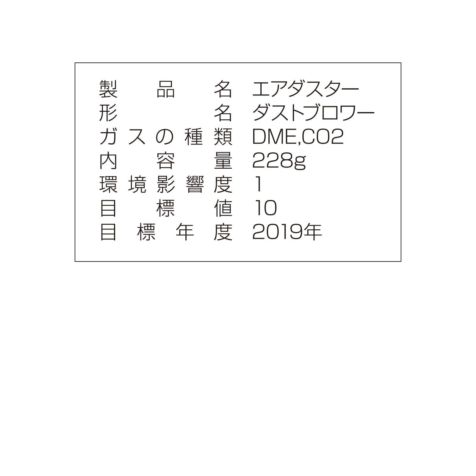 【ガスの種類】DME+CO2【環境影響度※】1【内容量】228g(350mL)