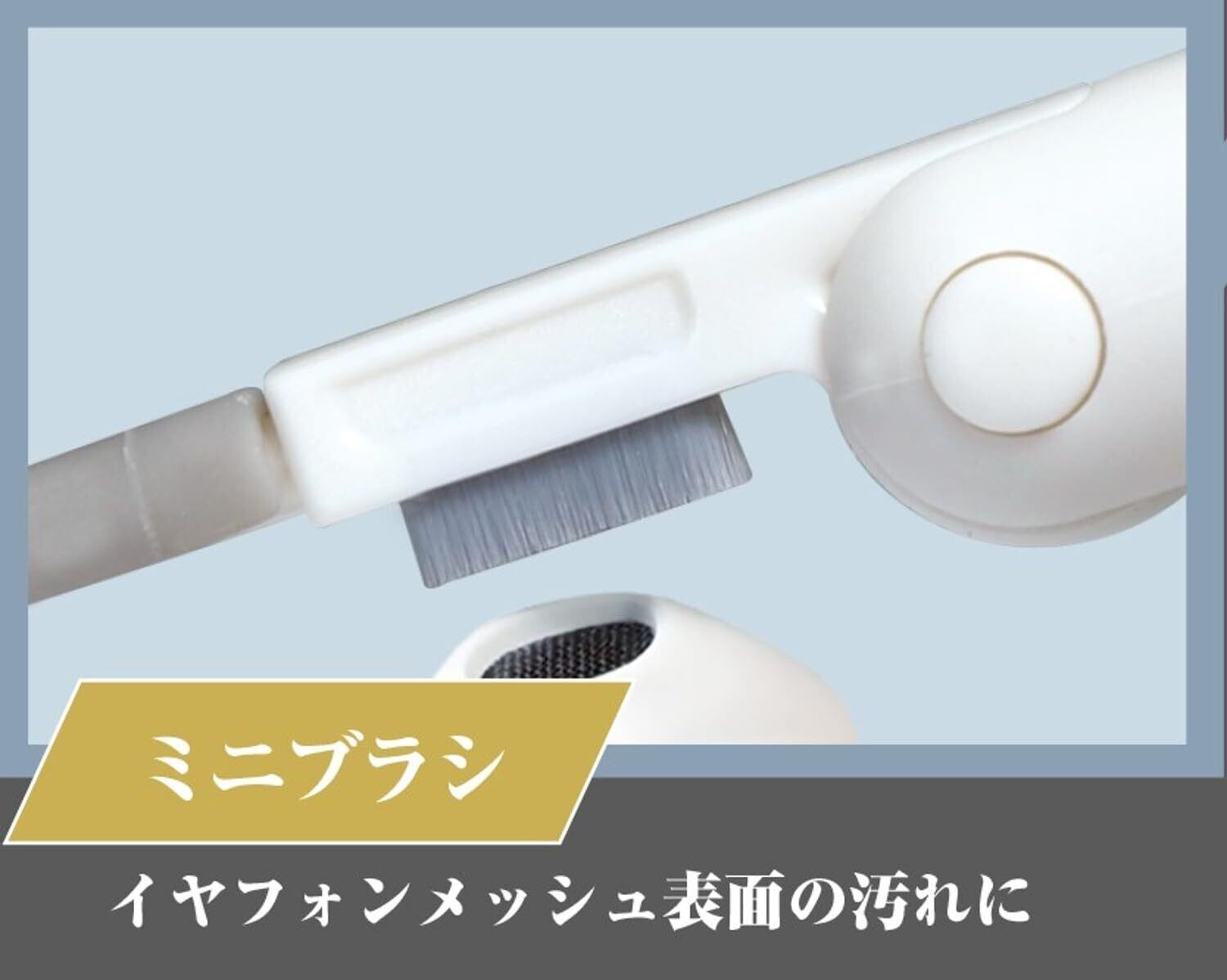 クリーニングペン:イヤフォン穴のホコリや汚れに ミニブラシ:イヤフォンメッシュ表面の汚れに スポンジブラシ:充電ケースや手の届きにくい汚れに