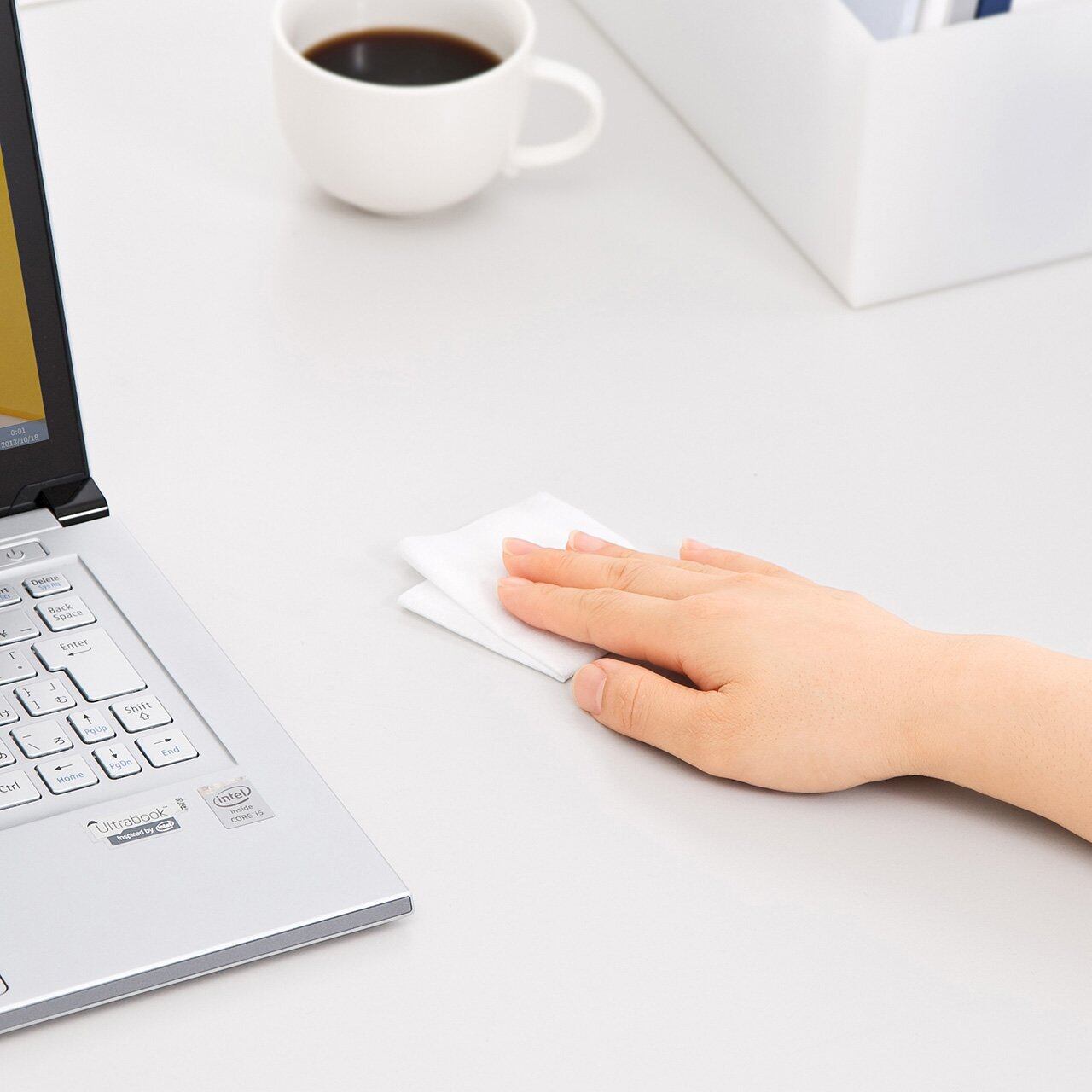 ●拭き取り性能の高いアクリル系超極細繊維不織布を使用しており、この不織布の特殊構造により強力な拭き取り性能を発揮します。