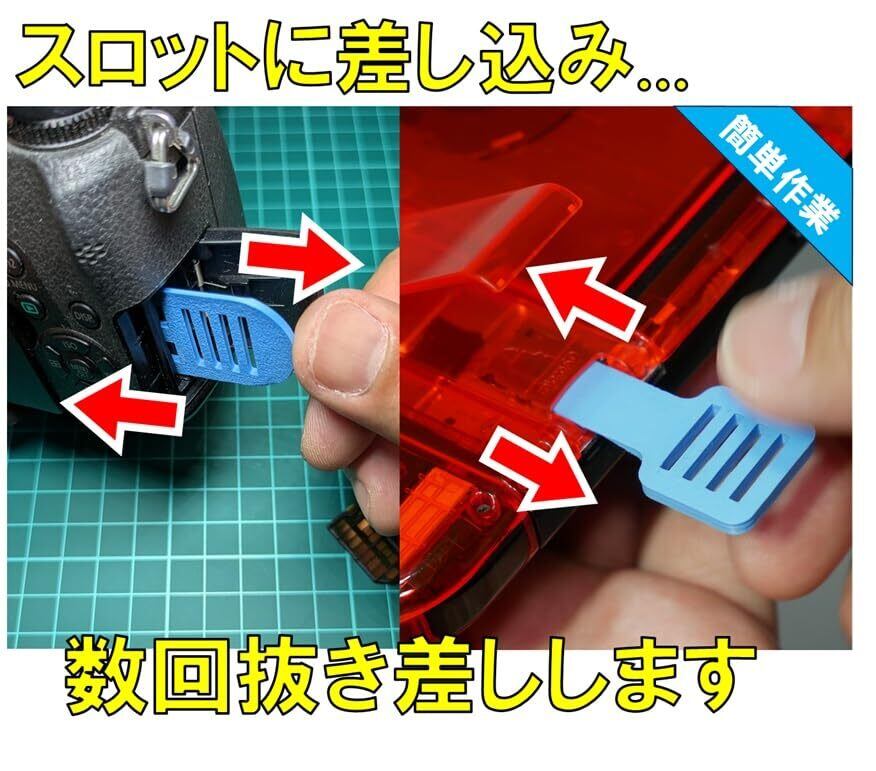「このクリーナーは、出し入れするだけの簡単作業で、スロット内部の汚れやホコリをしっかりと除去します。特にSDカードやMicroSDカードを頻繁に使用する方に最適で、高速転送を維持するためには欠かせない一品です!」