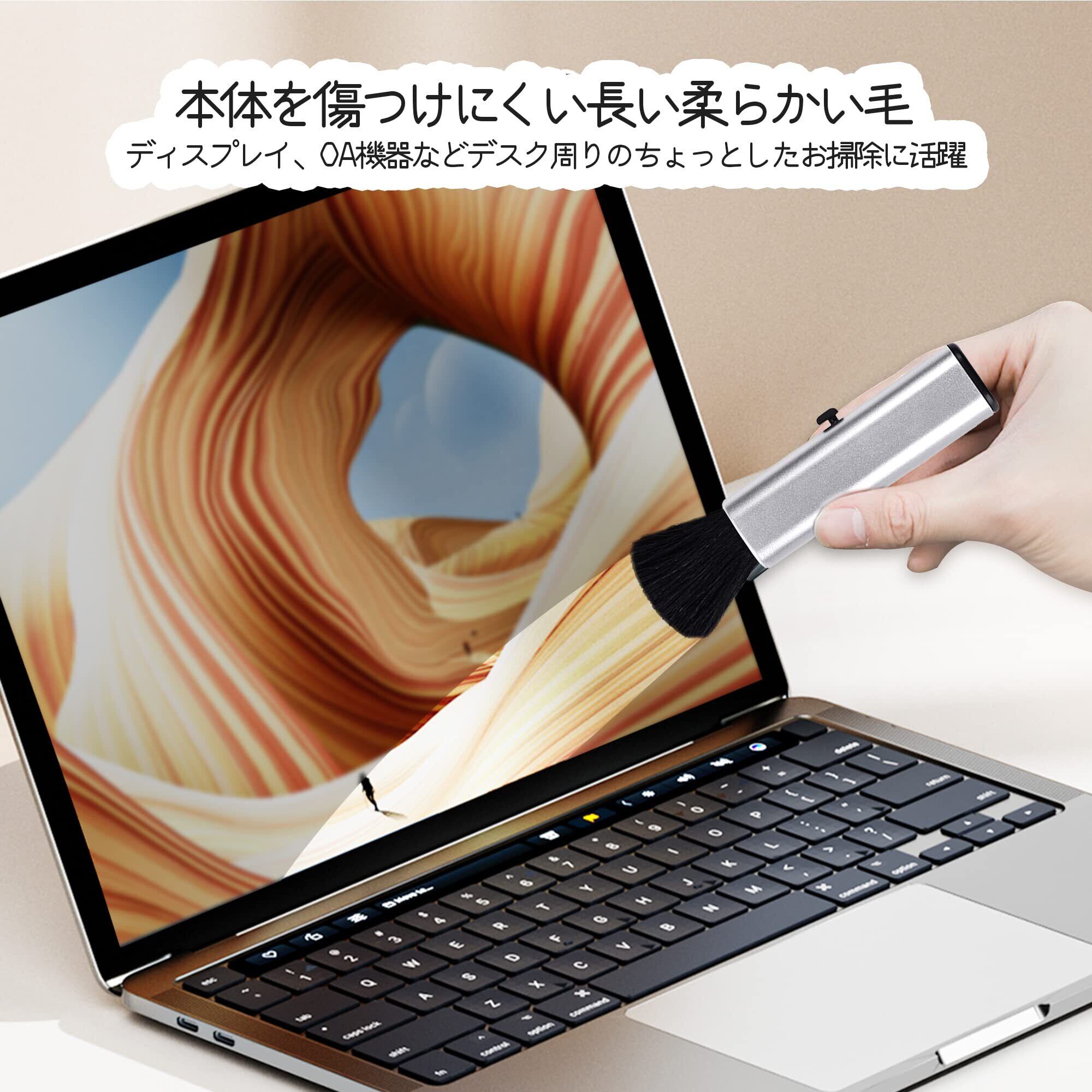 「ブラシは静電気を効果的に除去し、ホコリの再付着を防ぎます!柔らかなナイロン素材の毛を使用しているため、デリケートな機器を傷める心配もなく、安心して使用できます。」