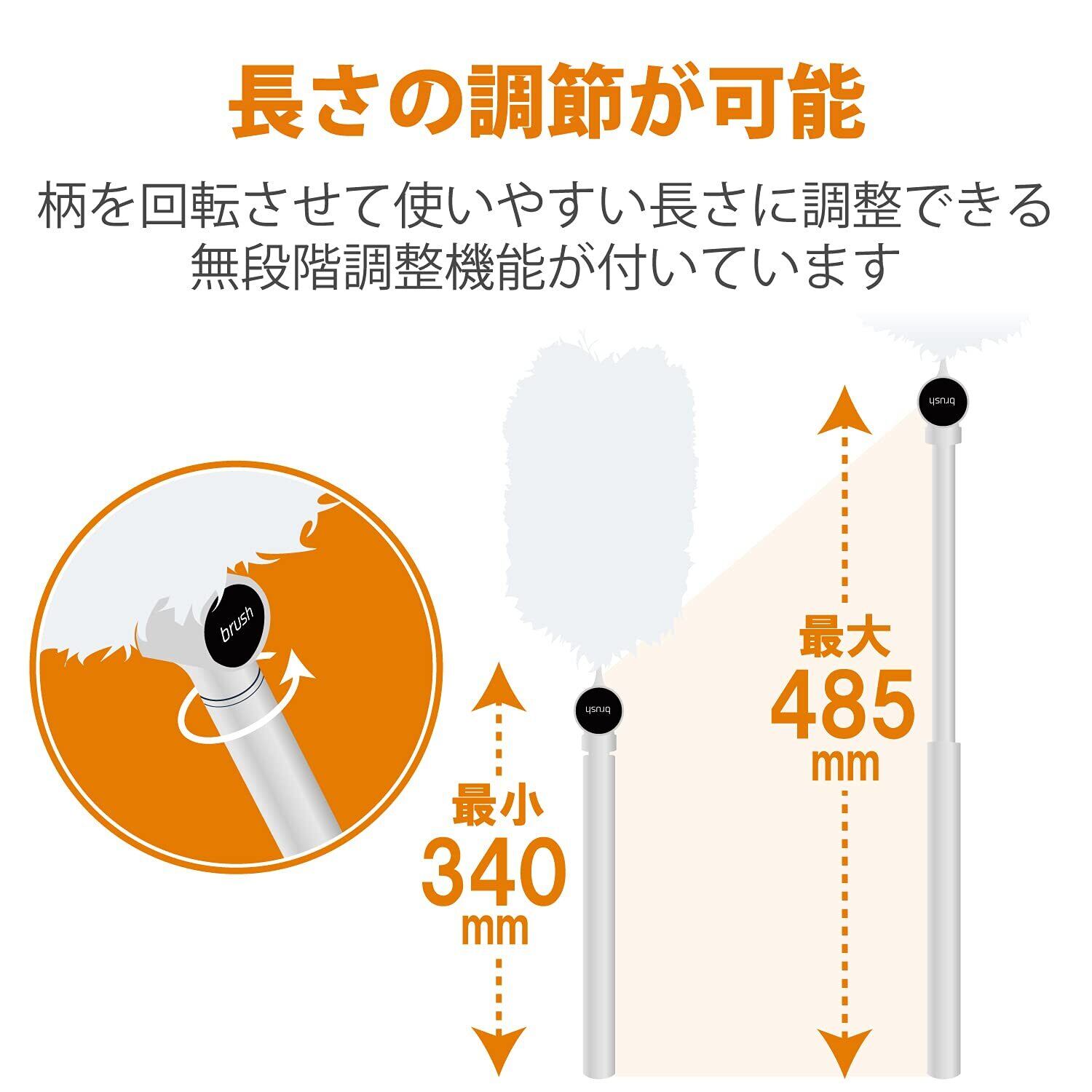 「ブラシは長さと角度を自由に調整できるため、デスクや家具の隙間など手の届かない場所でもしっかりとクリーニングできます!これにより、細かい部分のほこりや汚れを見逃さずに取り除きます。」