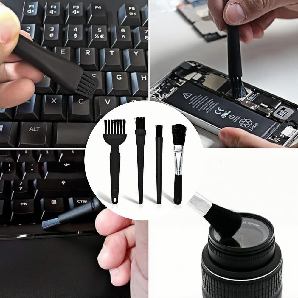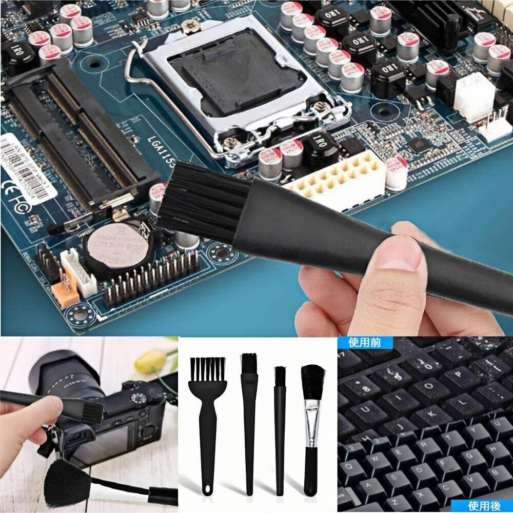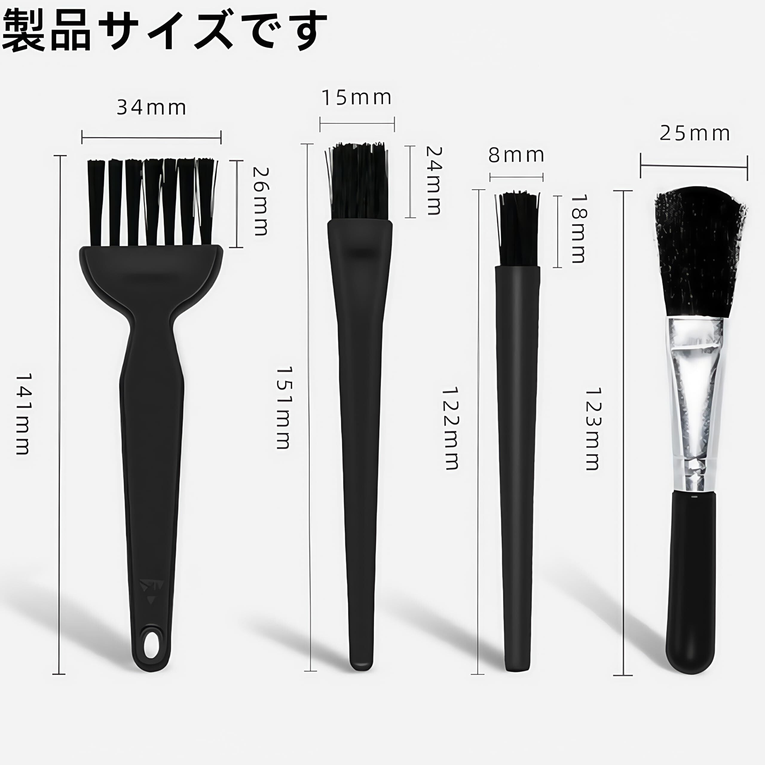「セットには、異なるタイプのブラシが4本含まれており、さまざまな場所のクリーニングに対応しています!細かな隙間や delicate な部分にも使えるため、掃除が億劫になりがちな電子機器のメンテナンスを楽にします。」