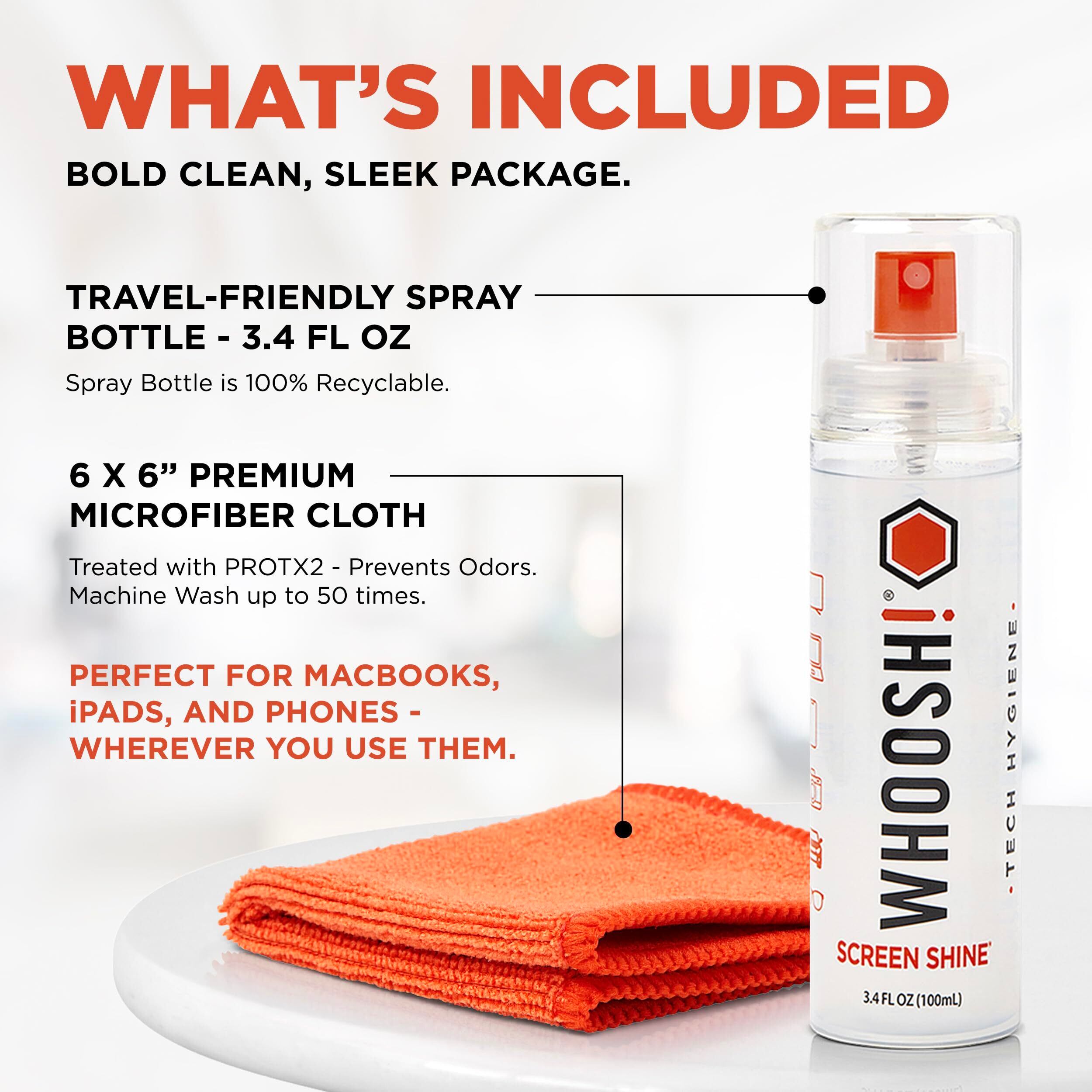 **WHOOSH!スクリーンクリーナーキットスマートフォン、iPad、メガネ、Kindle、LED、LCD、TV 100ml、布2枚に最適**