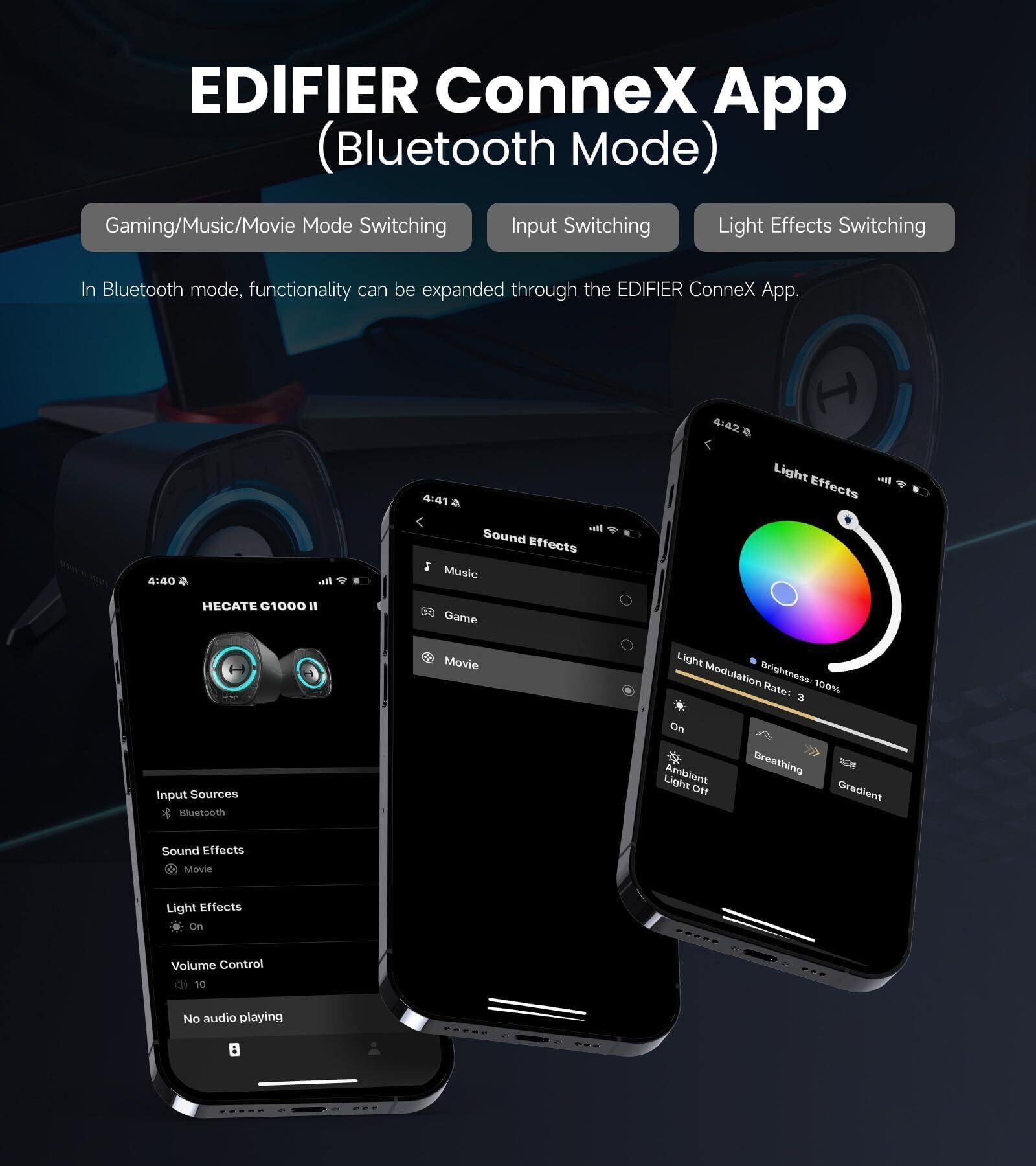 3 種類 EQ モード(ゲーム / 映画 / 音楽):各シーンに合わせた最適化イマーシブオーディオを届け、ゲームの臨場感・映画の広がり・音楽の詳細を最大限に引き出す