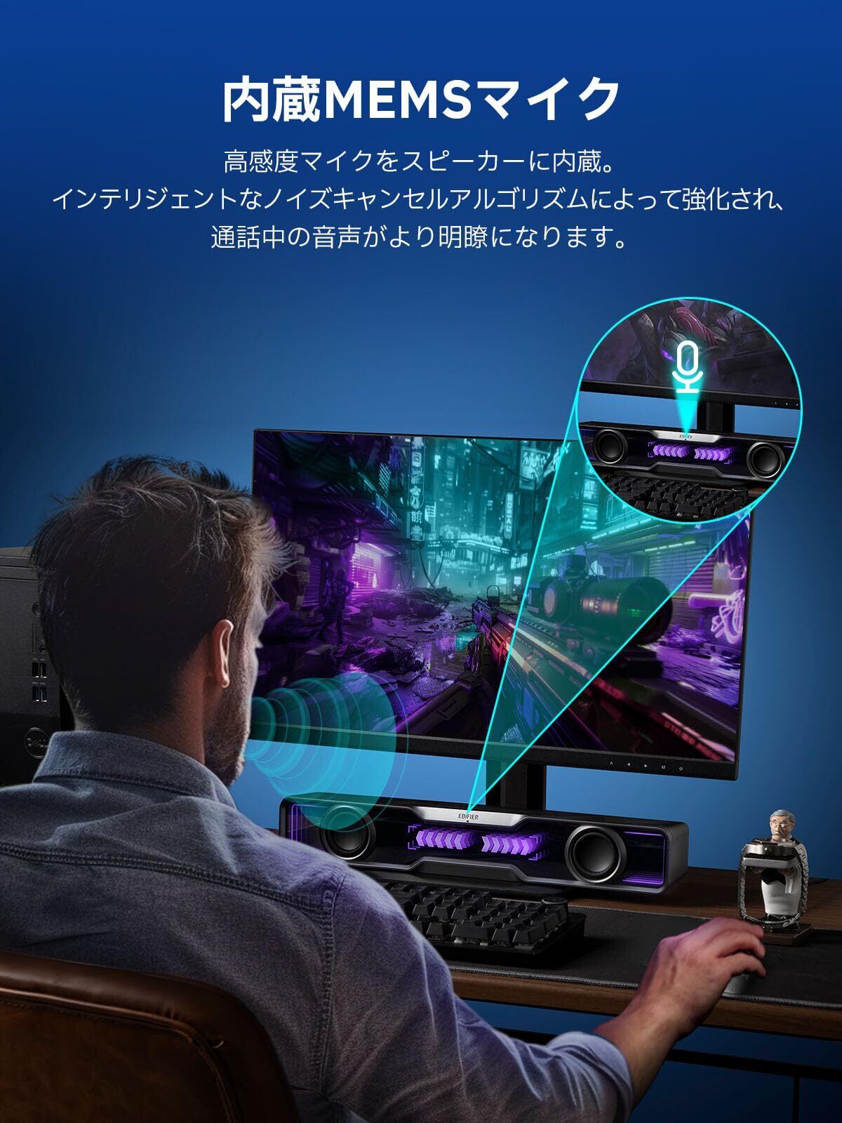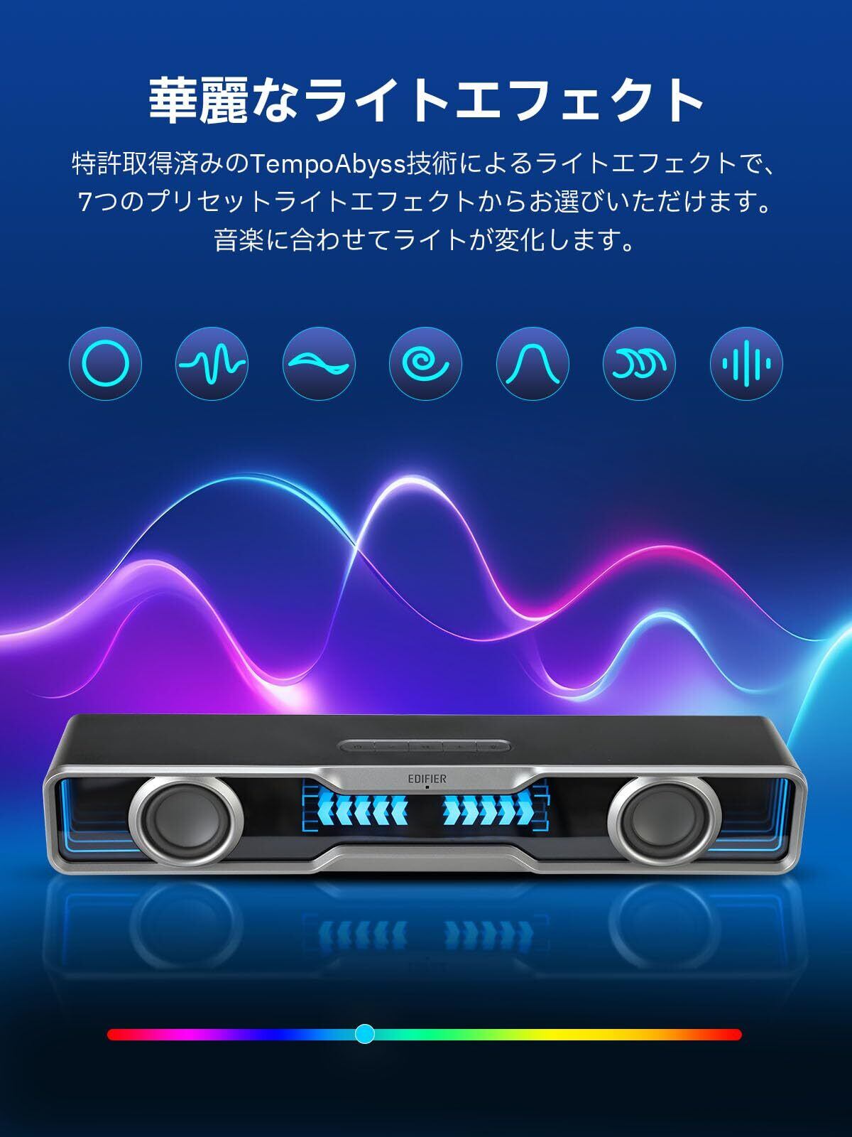 「VGP2024 SUMMER金賞」Edifier QS30 PCスピーカー サウンドバー Bluetooth 5.4 USB Type-A給電式 RGBライト付き 内蔵マイク 専用アプリ ゲーム/音楽/映画モード対応 パソコン/ラップトップ/タブレット/スマートフォン対応 ブラック