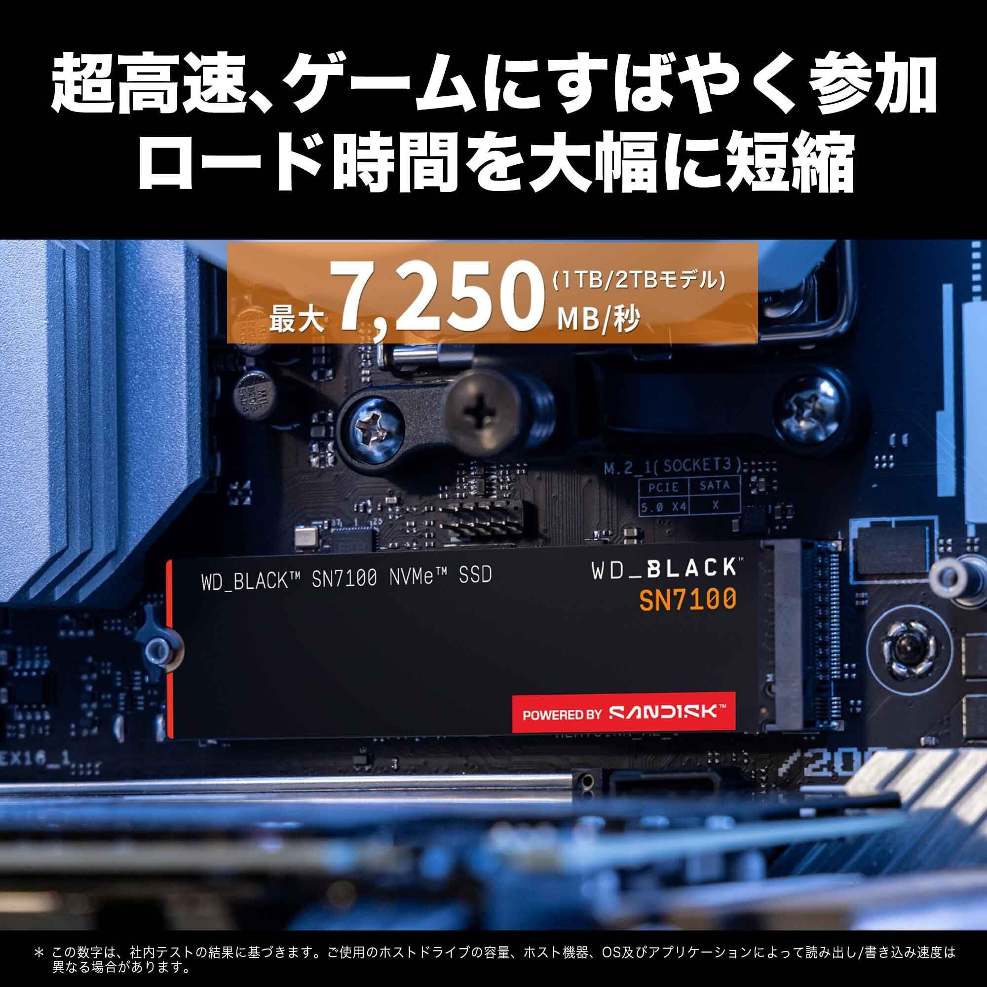 「『WD Black SN7100』は、高速性能を誇る内蔵SSDです!最大読取り速度7,250MB/秒を実現し、ゲームやデータ処理の利便性が飛躍的に向上します。高性能ストレージをお求めの方に最適な選択です。」