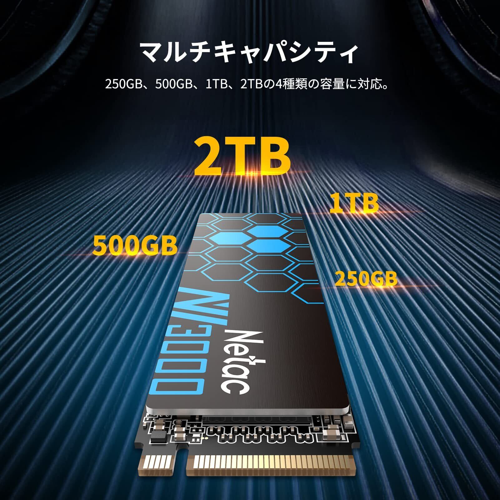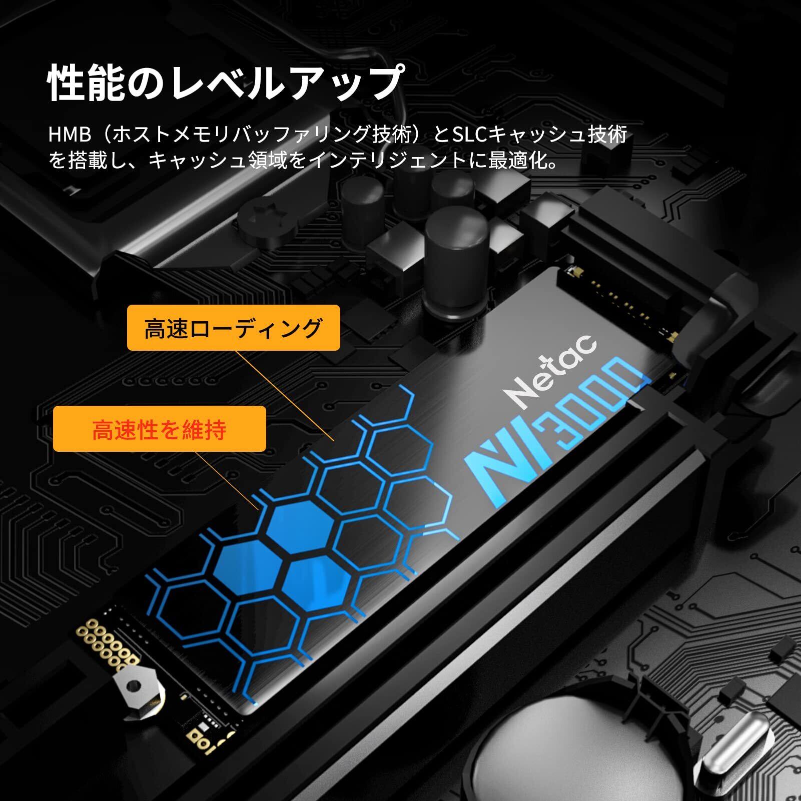 「『Netac NV3000 SSD』は、データストレージの新境地を切り開く高速内蔵SSDです!最大3000MB/秒の読み込み速度を実現しており、大容量ファイルの転送やアプリケーションの起動を瞬時に行うことができます。」