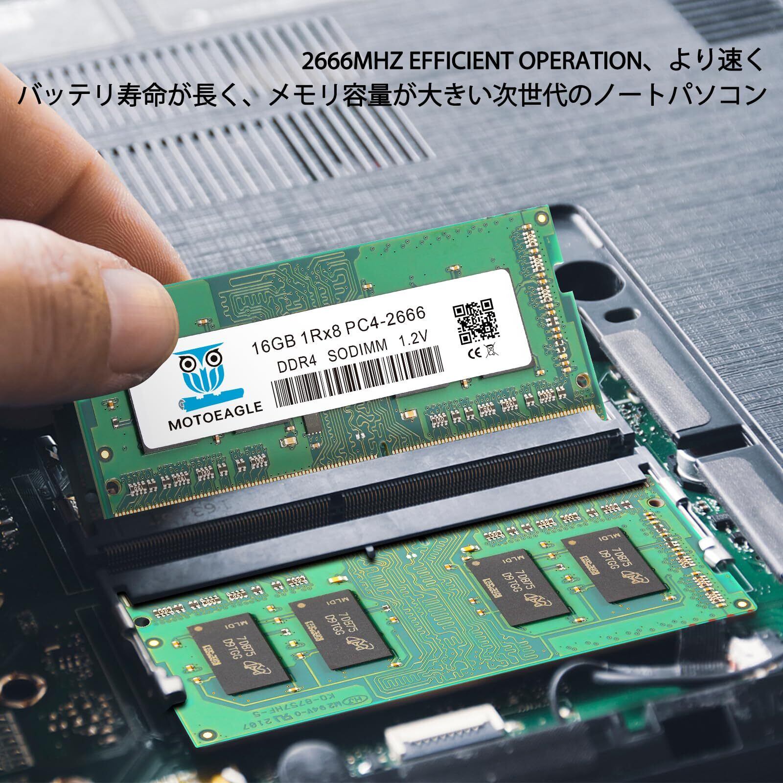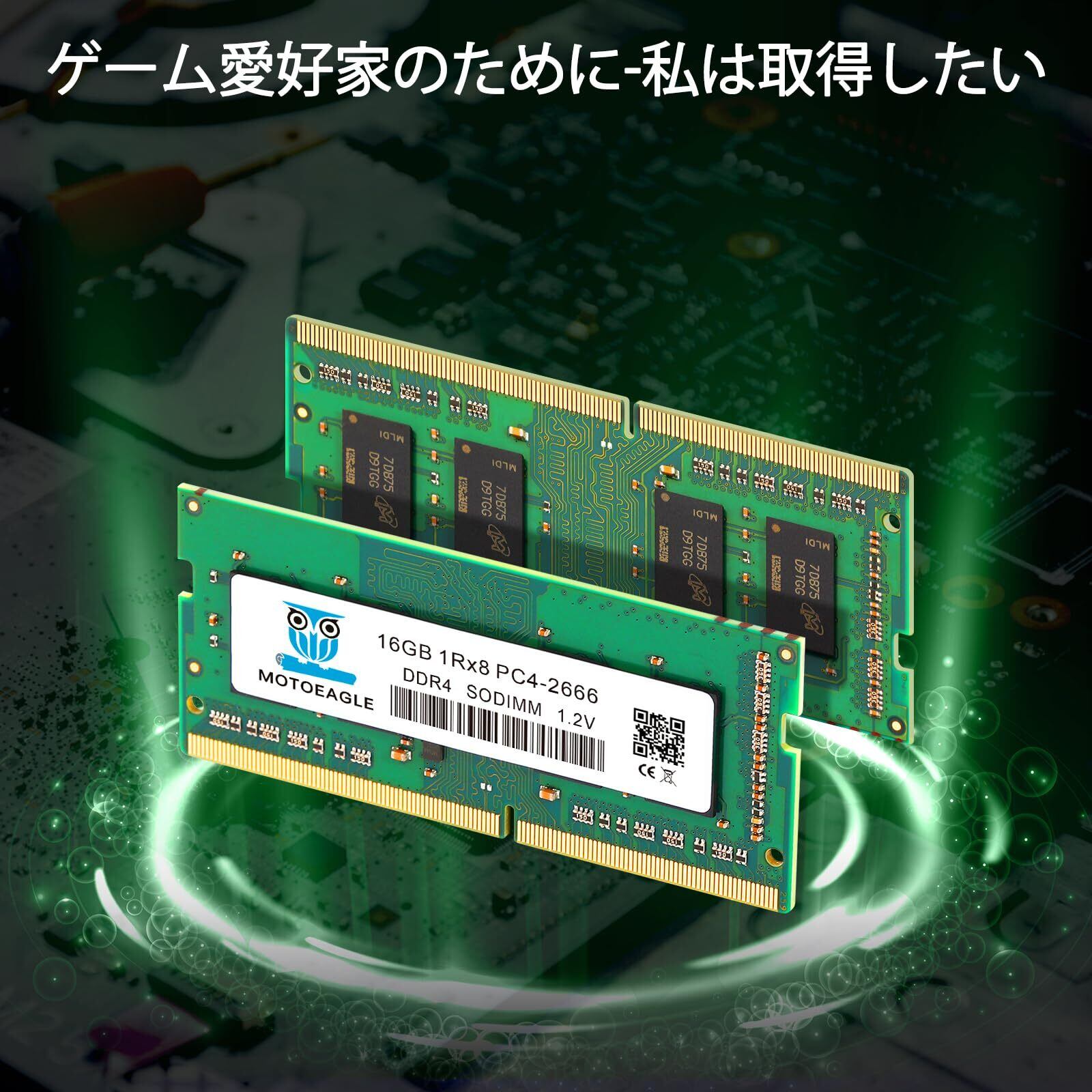 PC4-21300 (PC4-2666V) 16GBx1 DDR4 2666MHz (DDR4-2666) 1Rx8 非ECC Unbuffered 1.2V CL19 デュアルランク 260 ピン SODIMM ラップトップ ノートブック PC メモリ RAM