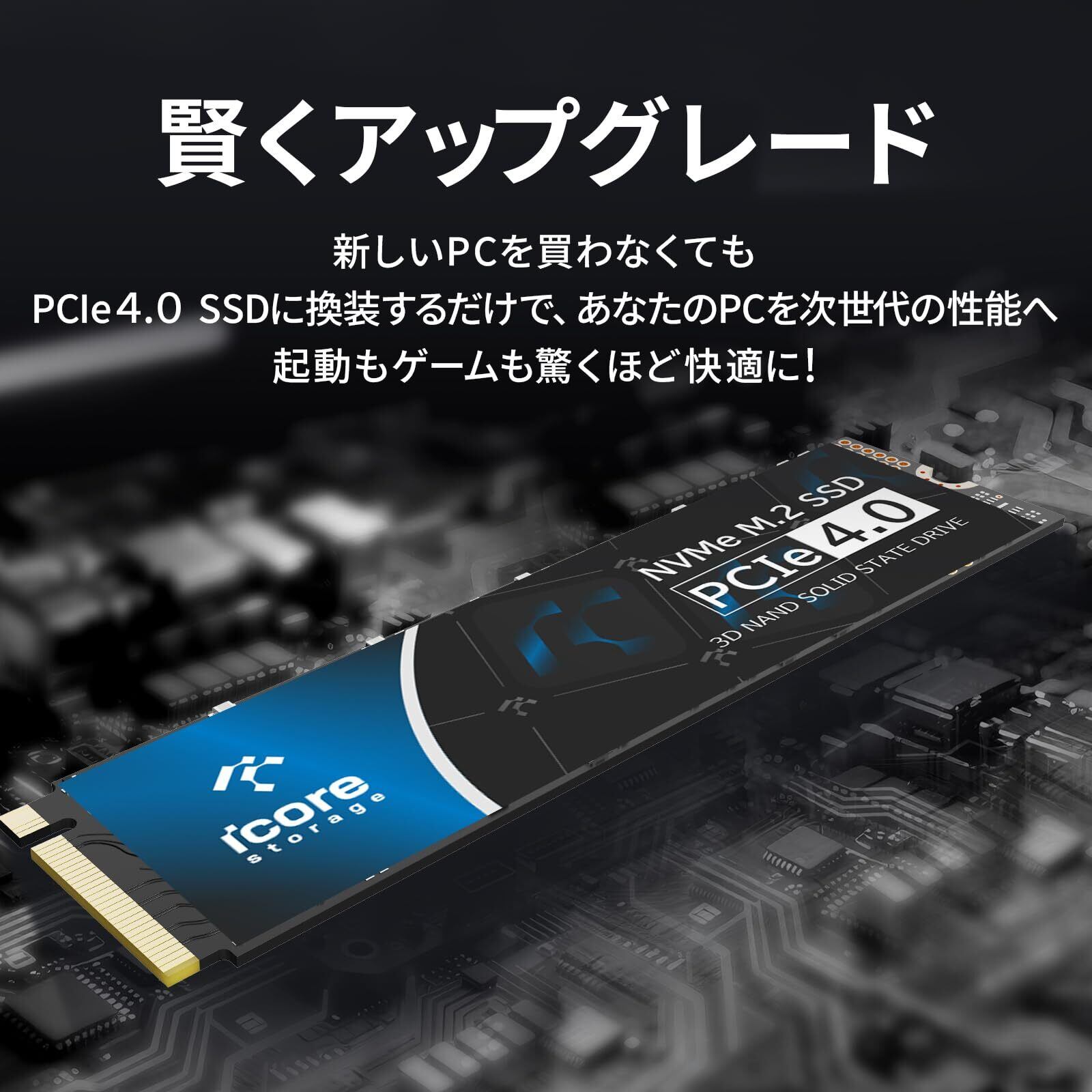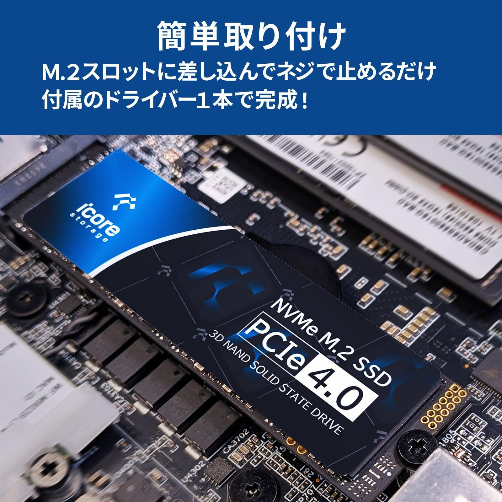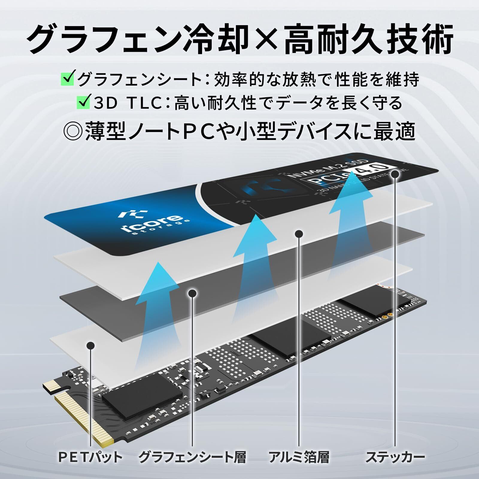 内蔵SSD 2TB M.2 NVMe 2280 PCIe 4.0 Gen4×4 TLC 3D NAND 日本ブランド 国内5年 超高速 (最大読込み7450MB/s、最大書込み6600MB/s) SLCキャッシュ 高耐久 グラフェン放熱シート付き 新型PS5動作確認済み ゲーミングPC 換装 SSD増設 icore storage