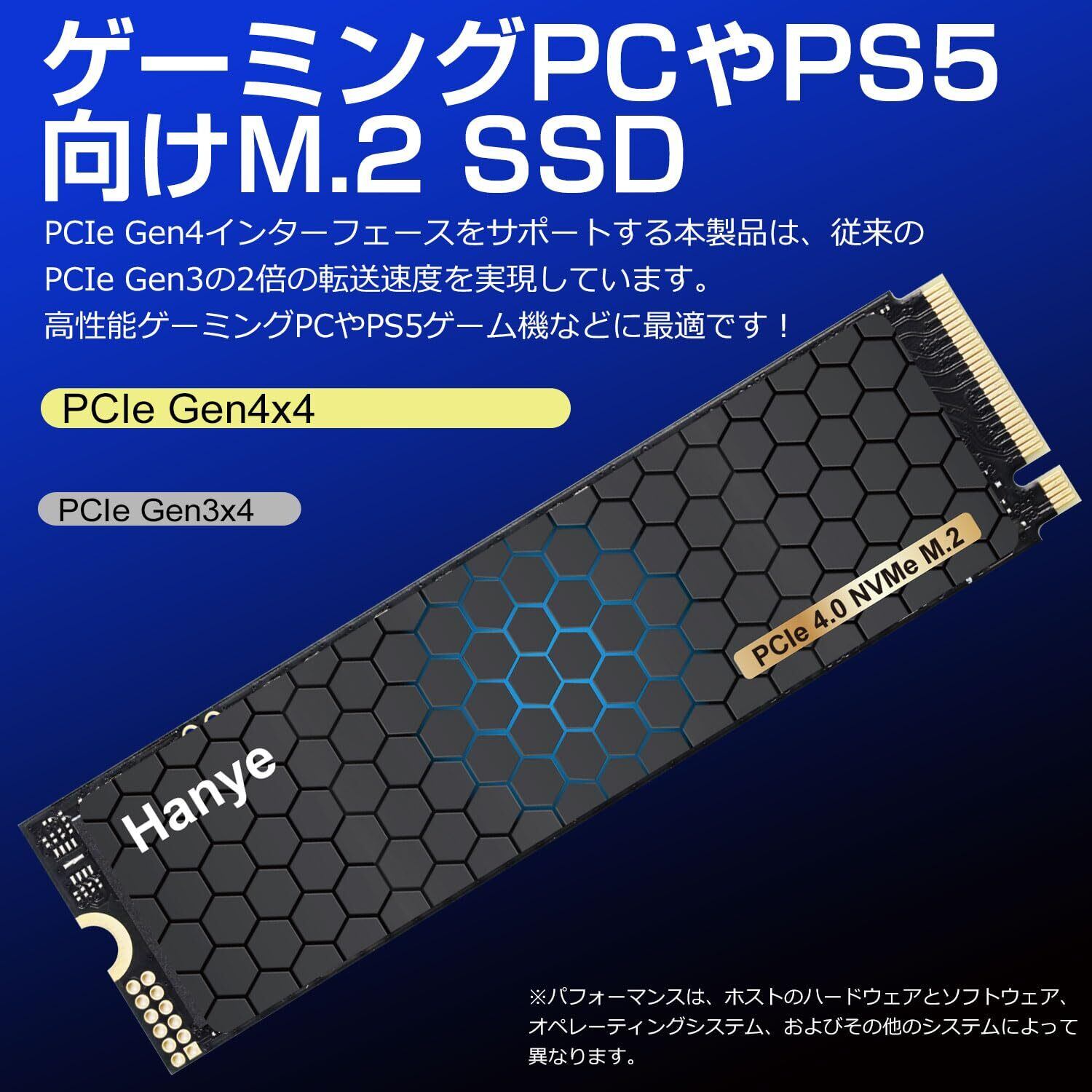 Hanye 内蔵 SSD 2TB 新型PS5 PS5動作確認済み PCIe Gen4x4 M.2 NVMe 2280 最大読込:7300MB/s 最大書込み:6300MB/s 3D NAND グラフェン放熱シート付き HE80-2TGHS 国内正規品メーカー5年