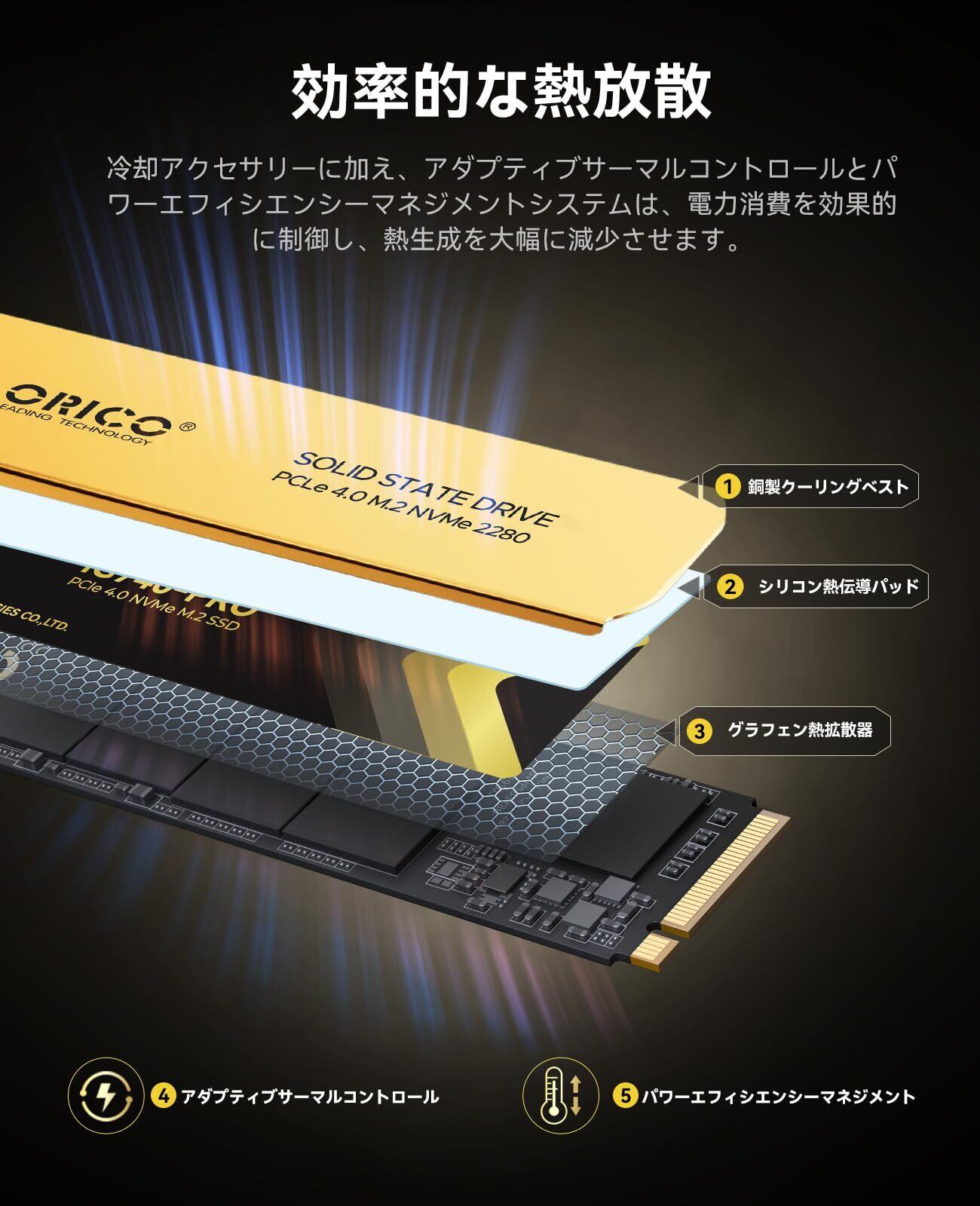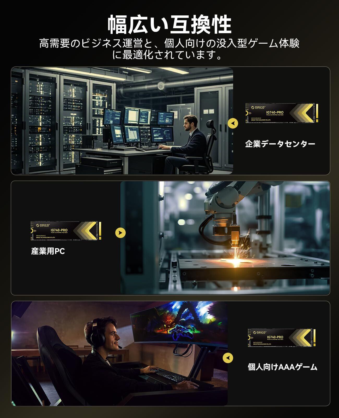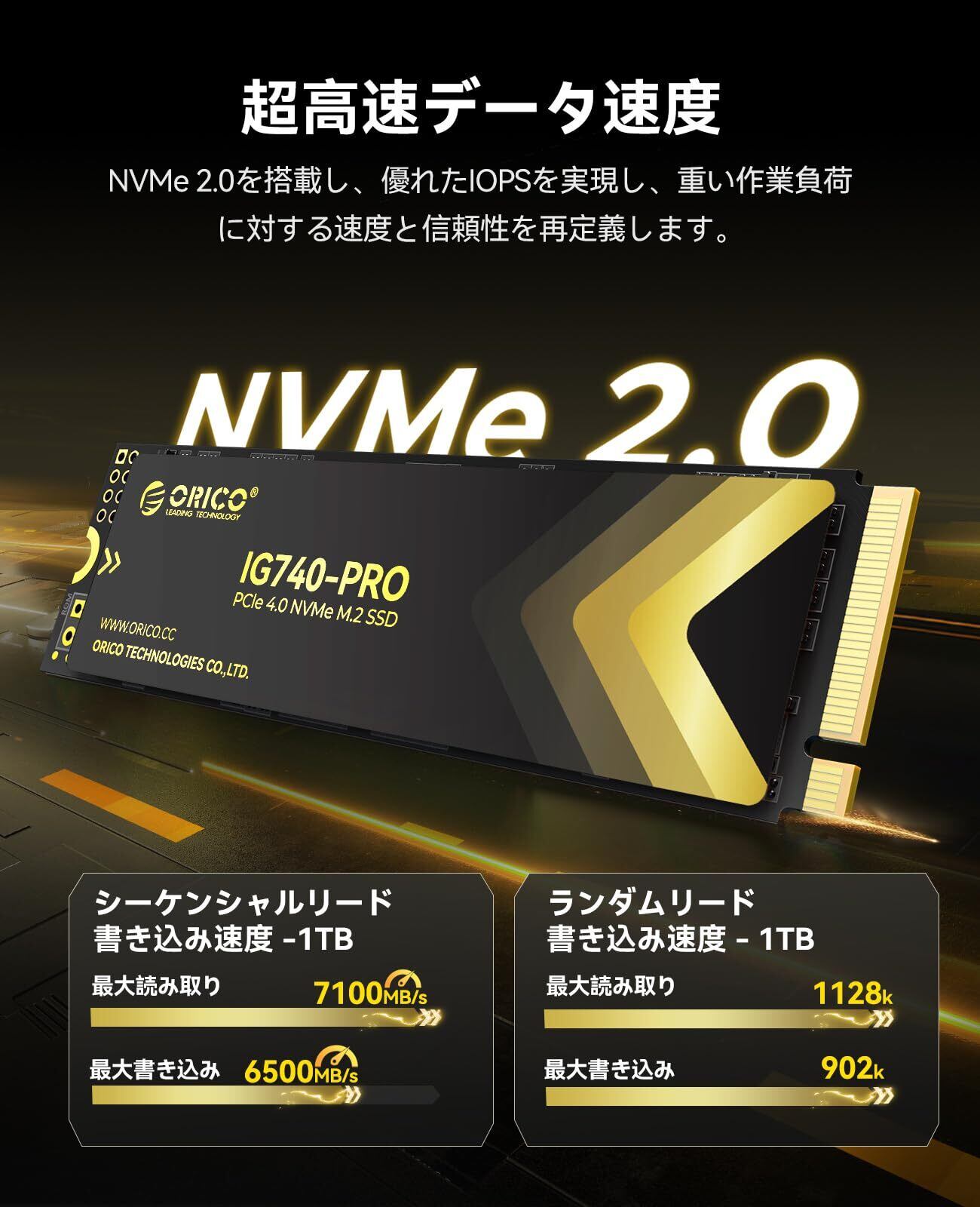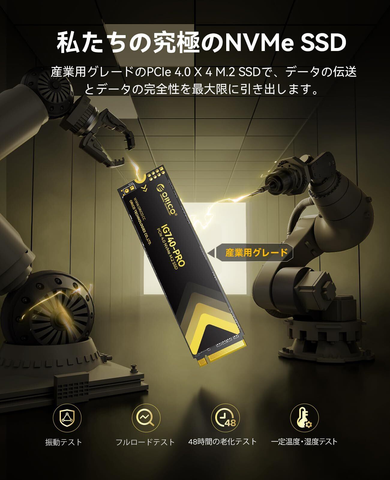 ORICO IG740PRO 1TB 産業用内蔵SSD - PCIe 4.0 M.2 NVMe 2280 読取速度 7100MB/s 書込速度 6500MB/s 高耐久 3D TLC NAND搭載 600TBW エッジコンピューティング・産業用PC・PS5対応 5年メーカー