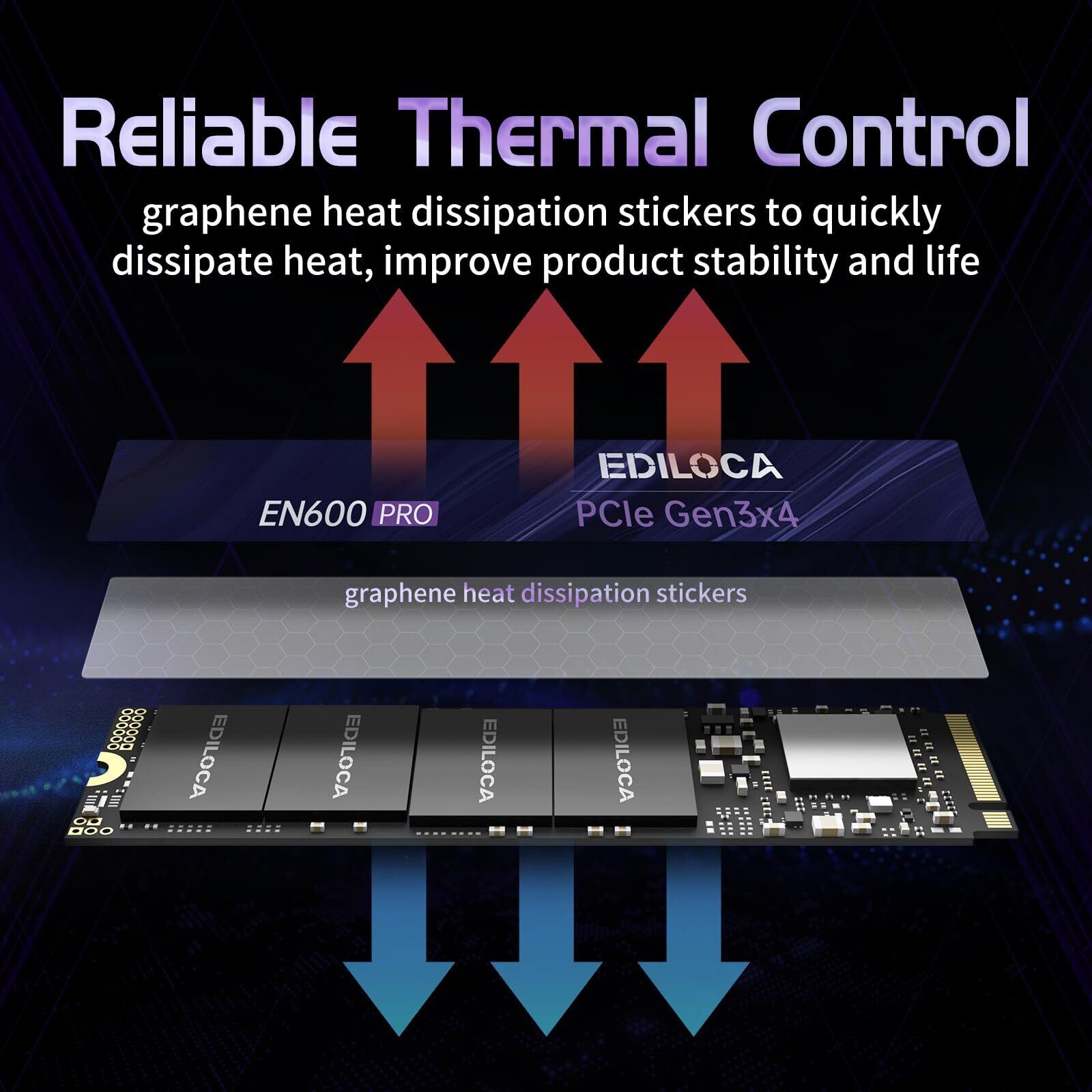 EN600 PRO SSD 256GB PCle 3.0x4 NVMe M.2 2280 最大読込: 2800MB/s 最大書込:2000MB/s 内蔵SSD SLC キャッシュ 3D NAND TLC グラフェン冷却ステッカー ノートパソコンとデスクトップパソコン に対応 メーカー3年